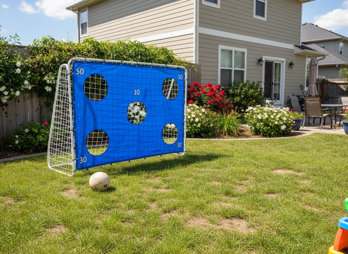 Améliorez la précision et la puissance de vos tirs grâce à la bâche cible à ouvertures incluse, qui transforme chaque séance en défi. Le cadre en acier avec tubes à paroi épaisse et ancres au sol assure la stabilité, tandis que le filet de qualité arrête les ballons en toute sécurité.