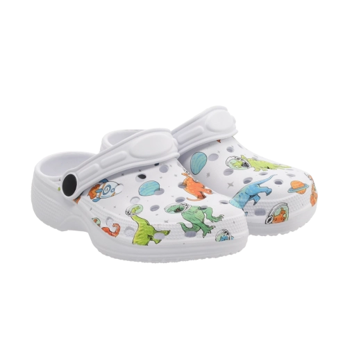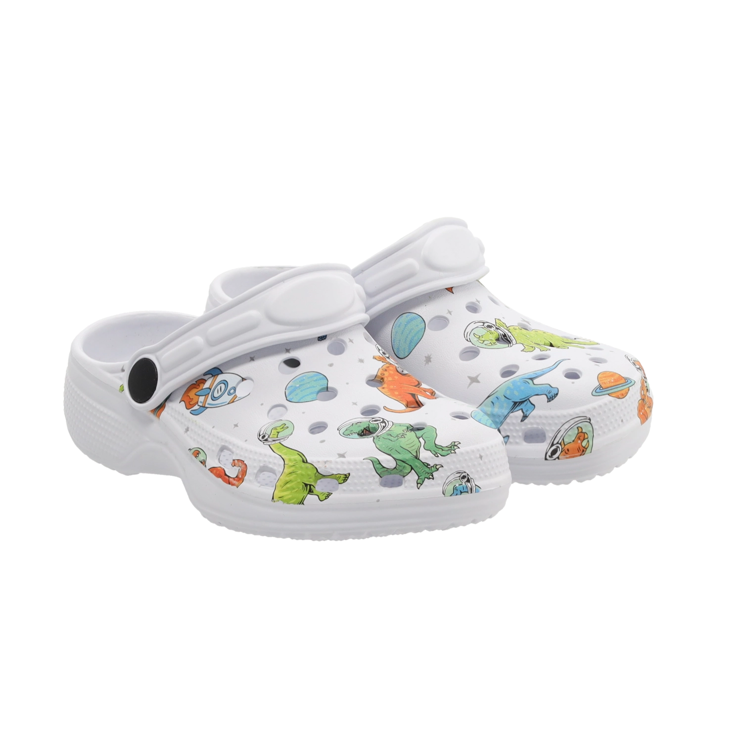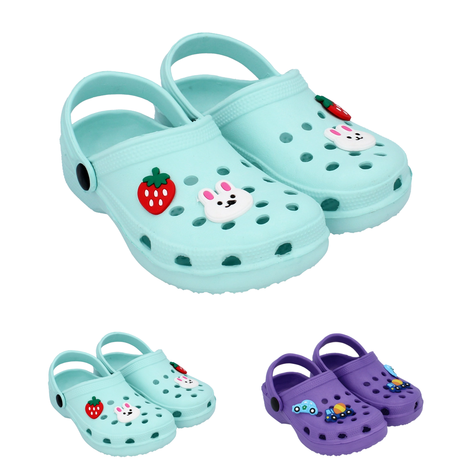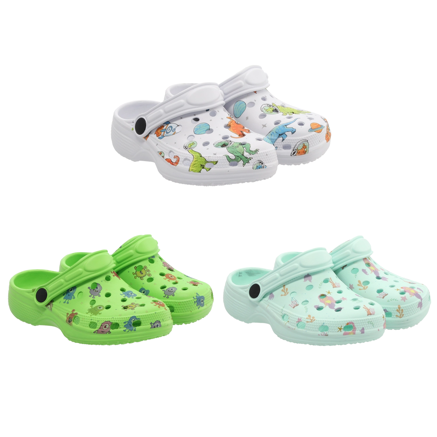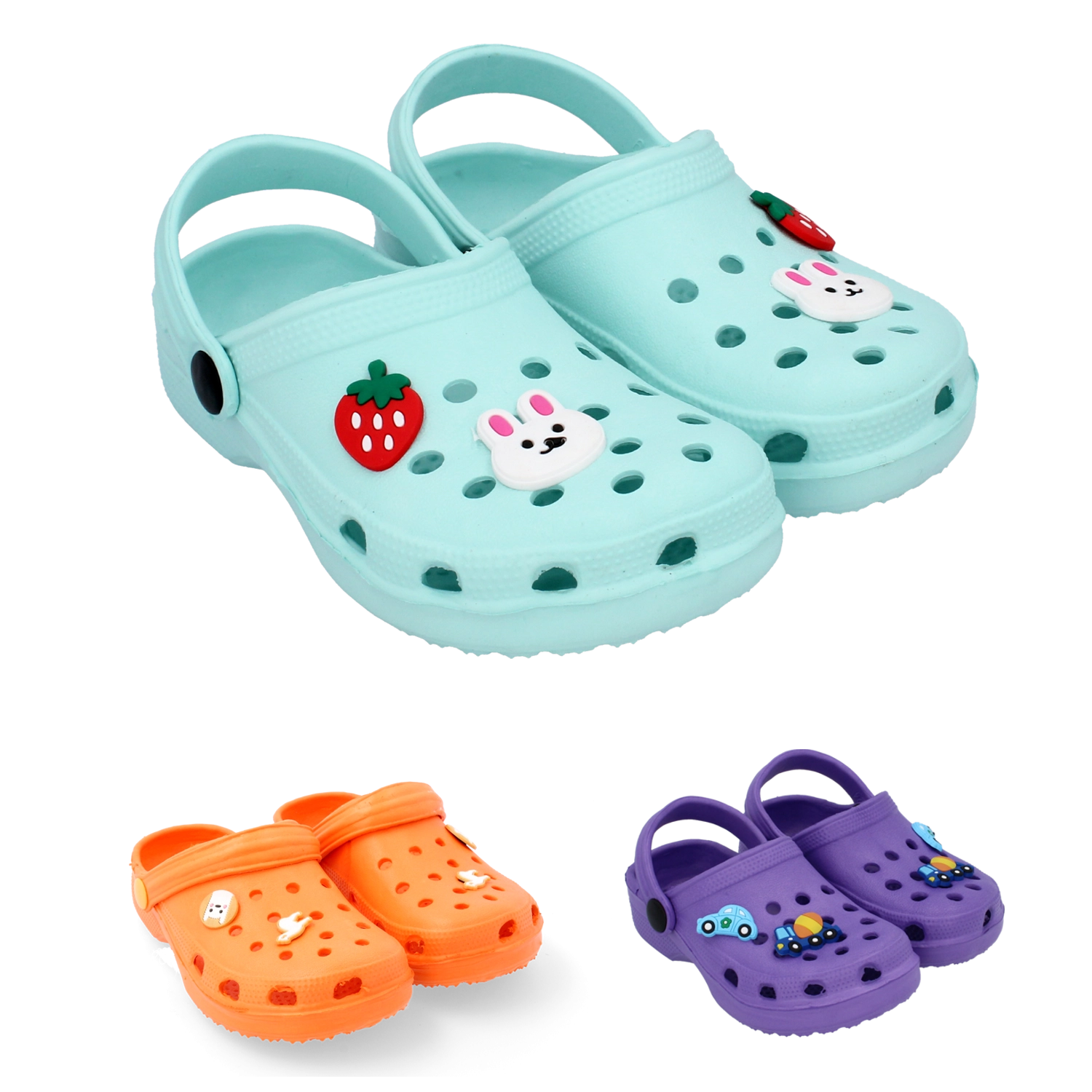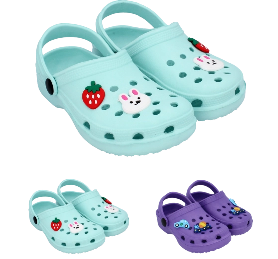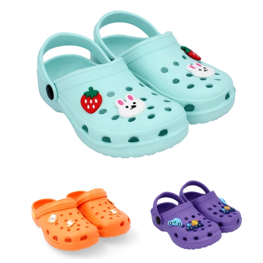 Légers sabots pour enfants en mousse EVA résistante, offrant un excellent confort au quotidien. Des ouvertures de ventilation stratégiques gardent les pieds au sec, la semelle profilée amortit chaque pas et la lanière bidirectionnelle au talon maintient la chaussure bien en place. Ils sont imperméables, faciles à nettoyer et parfaits pour le jardin, la plage comme pour un usage quotidien.