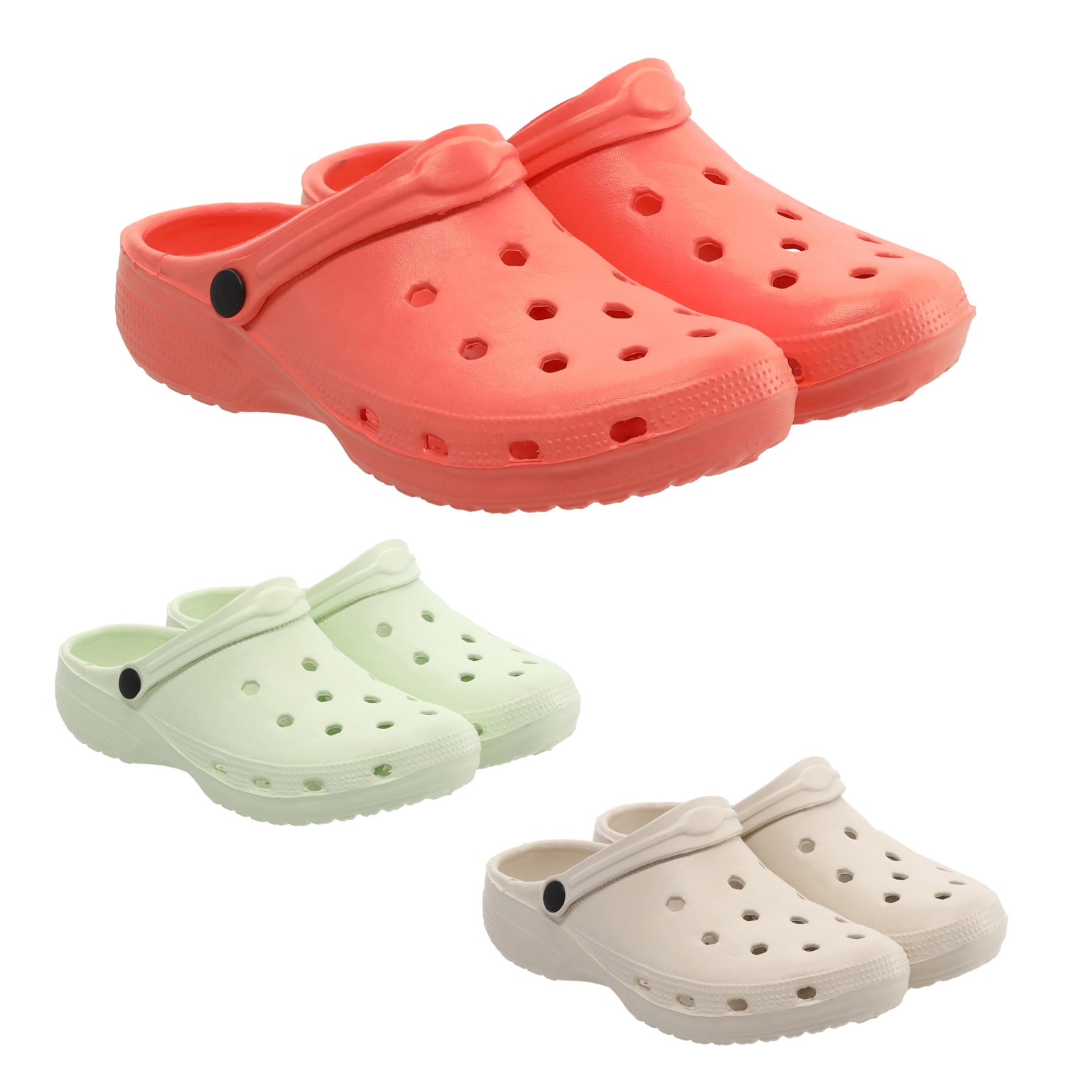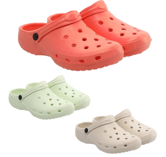 Légères et confortables, ces mules de jardin en EVA sont idéales pour le travail au jardin comme pour les loisirs. Elles offrent un séchage rapide, un entretien facile et une excellente aération grâce aux perforations sur l’empeigne. La bride arrière réglable maintient le pied bien en place et la semelle antidérapante assure une foulée sûre même sur surface humide. Disponibles en pointures 36–41 et en coloris bleu clair, fuchsia, vert.