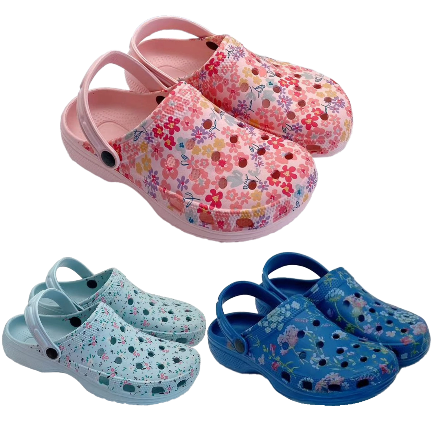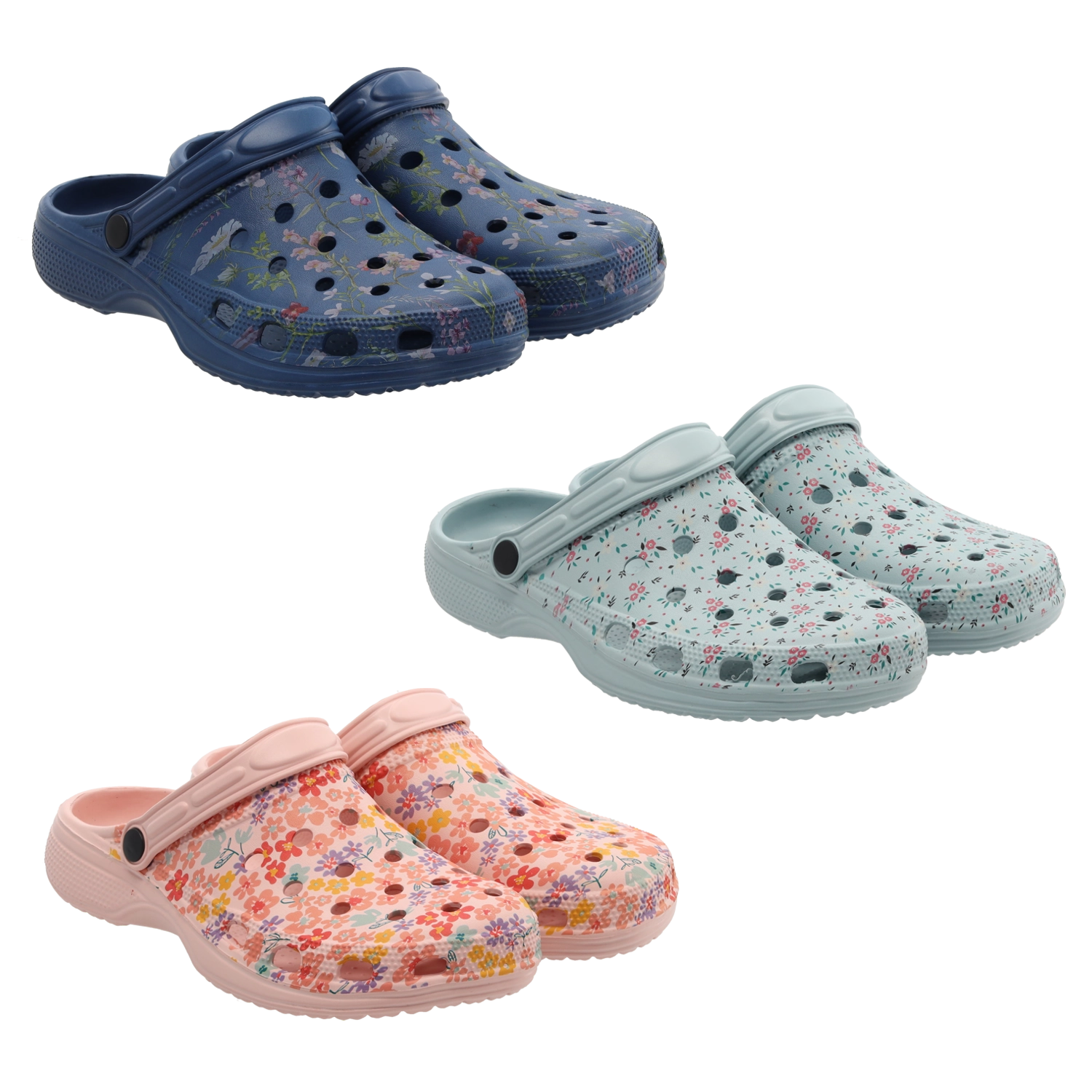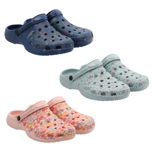 Des mules pour femme légères et confortables en matériau EVA avec motif floral, idéales pour le jardin, la plage et le quotidien. Elles offrent une imperméabilité, un séchage rapide et une excellente ventilation grâce aux ouvertures sur l’empeigne. La semelle de propreté profilée avec de légères cavités augmente la stabilité et le confort, tandis que la lanière mobile permet un port polyvalent – autour du talon pour une meilleure tenue, ou libre pour un enfilage facile.