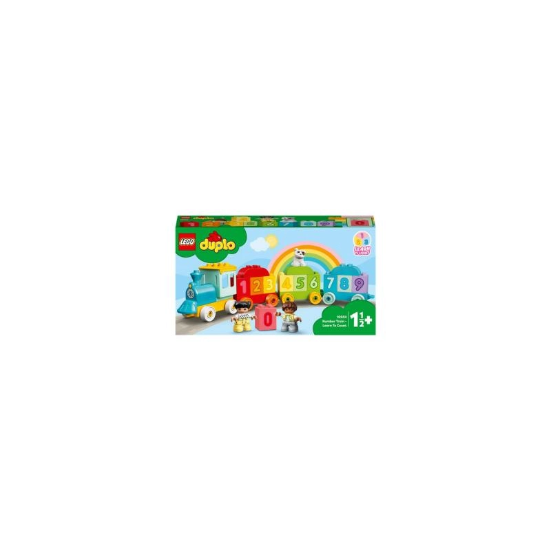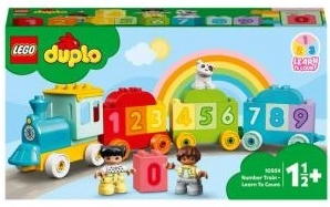 Le train éducatif apprécié de LEGO DUPLO aide les enfants à découvrir le monde des chiffres de manière ludique. Ils peuvent empiler, retirer, ordonner et trier les briques numérotées sur les wagonnets tout en développant la coordination œil–main et la pensée logique.