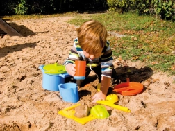 Le set comprend tout ce dont les enfants ont besoin pour préparer un festin de sable : de la casserole avec couvercle passoire à la poêle, au pichet et au sucrier, jusqu’aux louches et aux moules en forme de légumes et de cornets de glace. Le plastique résistant et l’emballage en filet facilitent le transport et le rangement.