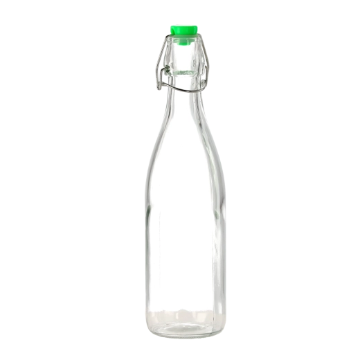 Bouteille en verre pratique d’une capacité de 0,5 l avec fermeture mécanique pour conserver en toute sécurité et avec style les jus maison, huiles ou liqueurs. Fermeture hermétique pour garder le contenu frais plus longtemps, verre transparent pour vérifier facilement la quantité et réutilisation pour une démarche écologique à la maison.