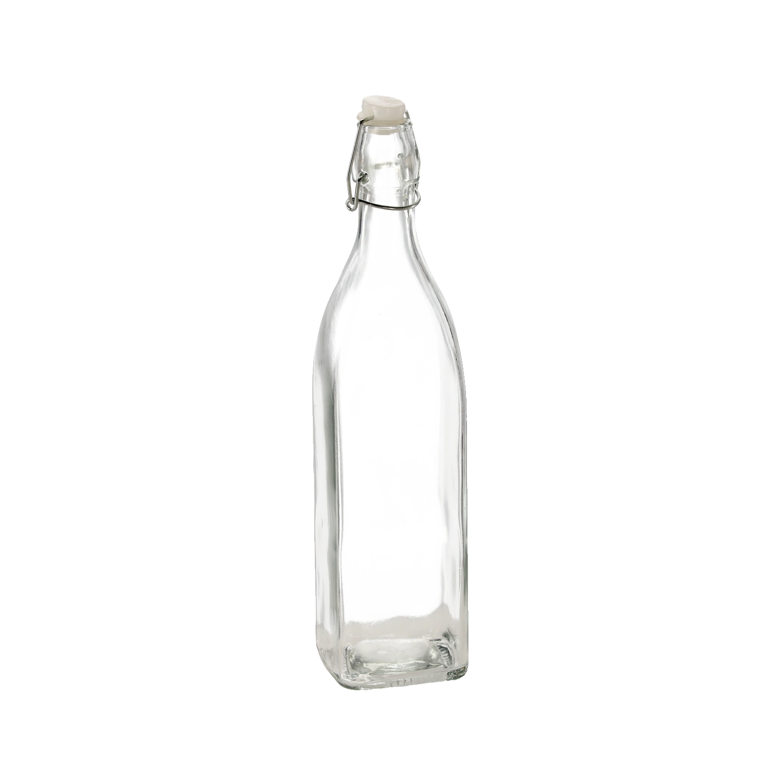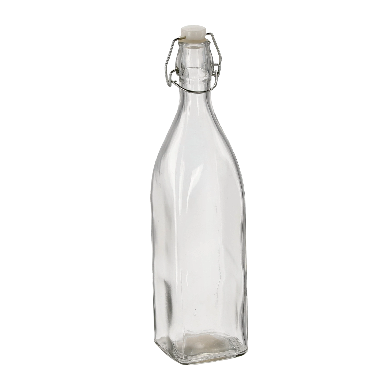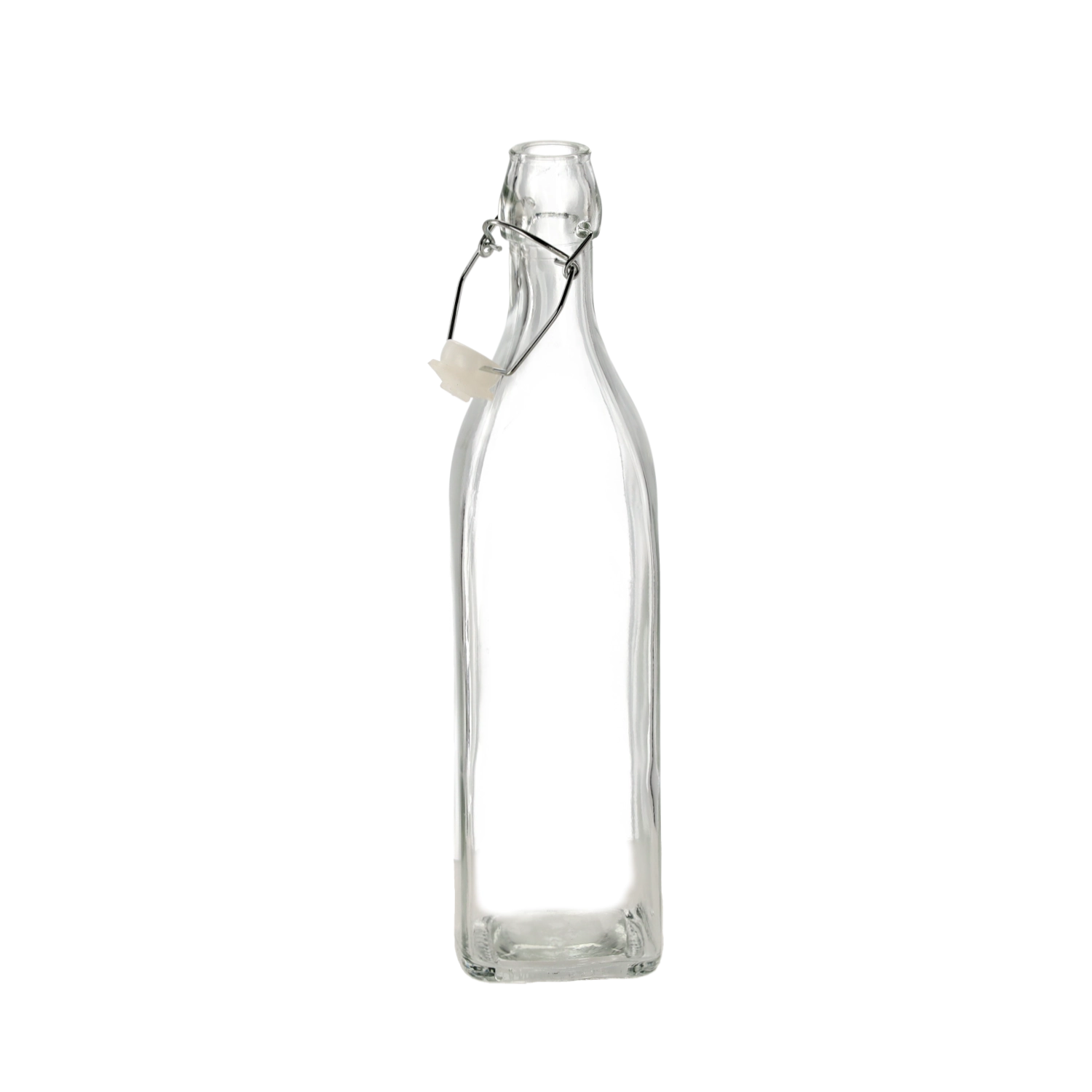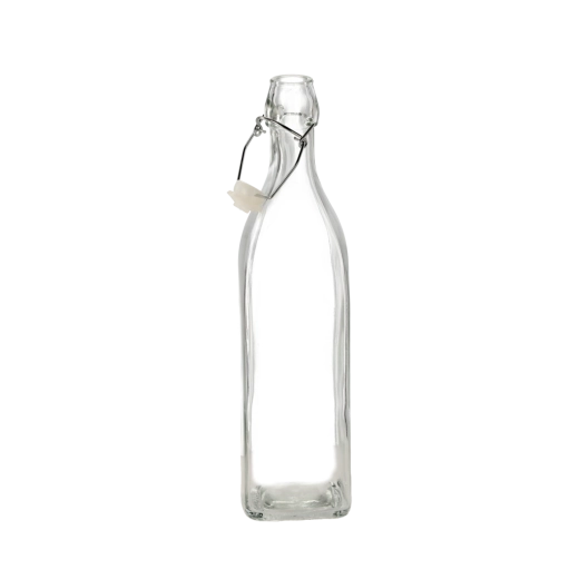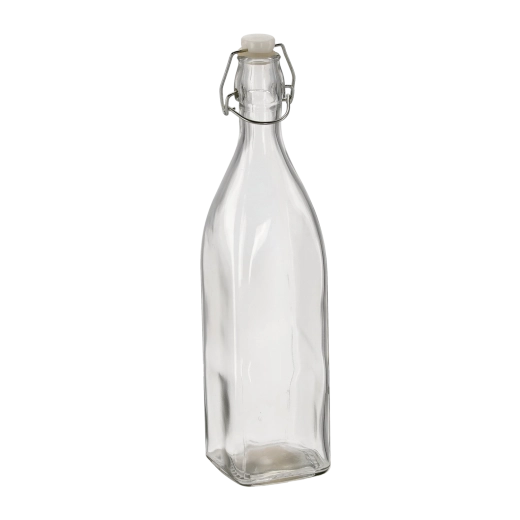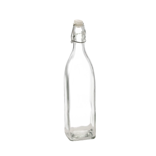 Élégante bouteille en verre d’une capacité de 950 ml avec un fond carré et une fermeture mécanique, idéale pour les liqueurs maison, jus et sirops. Fabriquée en verre résistant certifié pour le contact alimentaire, elle garantit une conservation sûre et une longue fraîcheur du contenu. Grâce à son design élancé, elle convient également comme élément décoratif pour la cuisine ou le garde-manger.