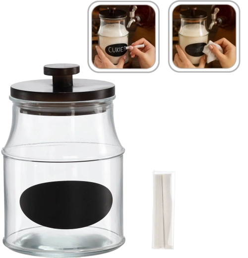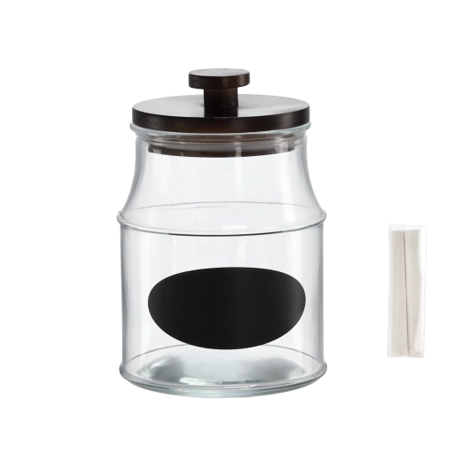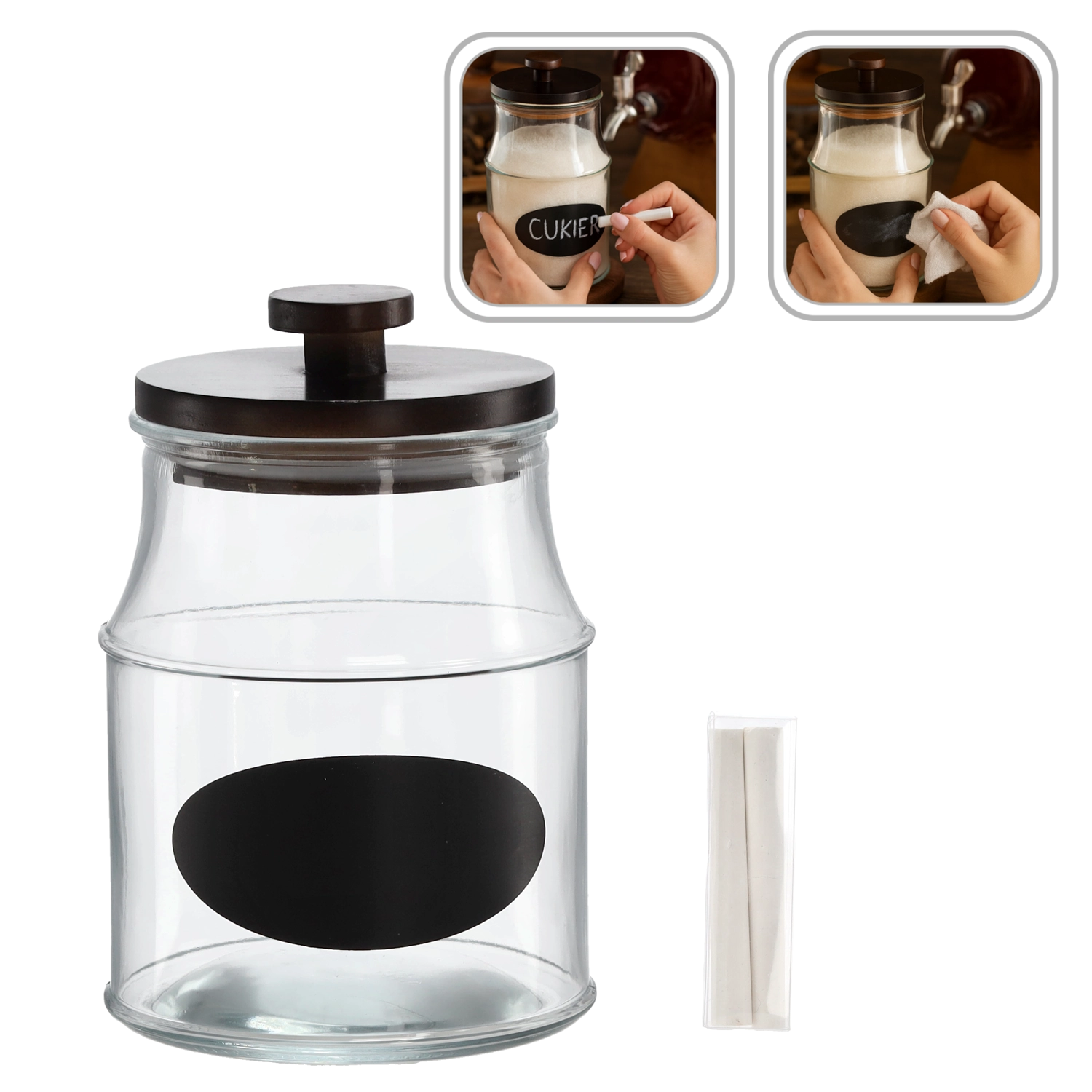 Pratique bocal en verre d'une capacité de 2,2 l, idéal pour stocker de plus grandes réserves d'aliments – miel, confitures, épices ou conserves maison. Il dispose d'un couvercle en bois hermétique pour préserver la fraîcheur, et comprend une étiquette noire pour l'inscription ainsi qu'une craie pour identifier facilement le contenu. Une excellente solution pour organiser la cuisine et le garde-manger tout en apportant une touche décorative stylée.