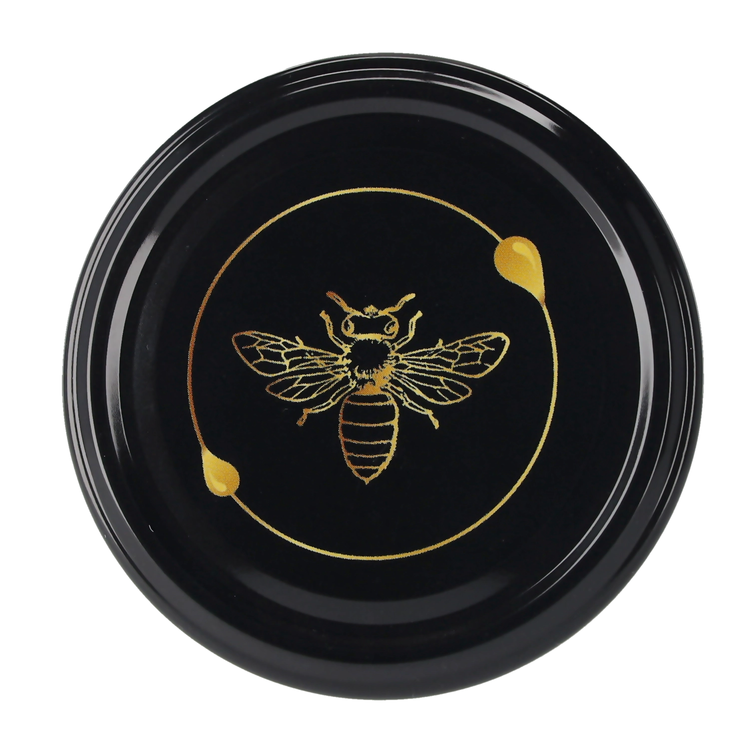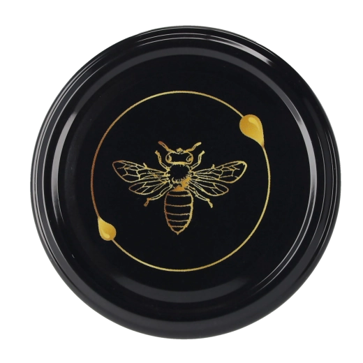 Les couvercles dorés avec abeille d’un diamètre ø 82 sont un excellent choix pour les apiculteurs, les producteurs fermiers et les artisans. Leur impression d’abeille, visuellement attractive, favorise la vente du miel et confère aux bocaux une apparence professionnelle. Des matériaux de qualité et une exécution précise contribuent à une fraîcheur durable et à un stockage sûr.