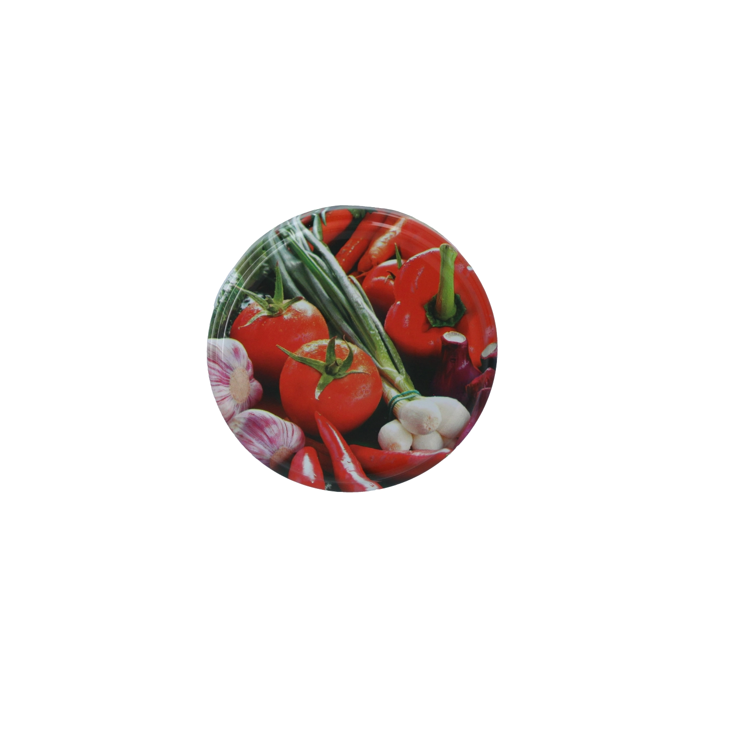Le motif légumes en impression quadricolore donne à vos bocaux un look attractif – parfait pour emballer des confitures maison, des pickles ou des légumes marinés. Les couvercles sont réutilisables – il suffit de les laver après usage pour les remettre en service.