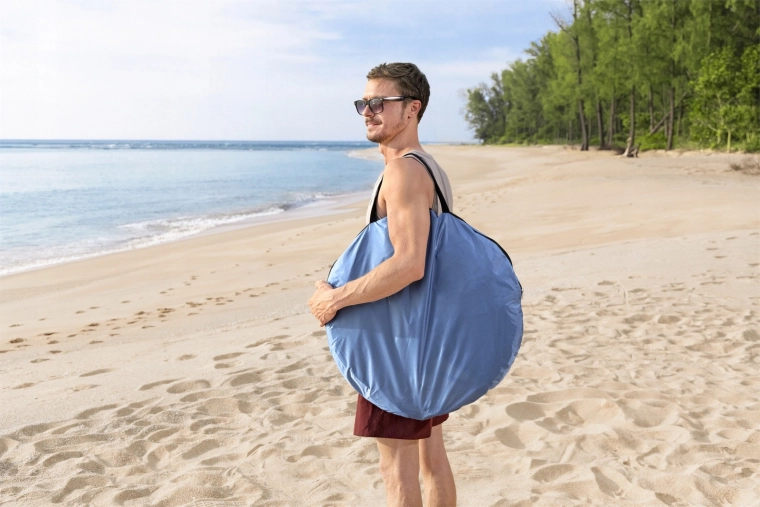 Avec un poids de seulement 1,1 kg et un sac de transport pratique, cette tente est la compagne idéale pour vos sorties. Vous apprécierez aussi la poche intérieure pour petits objets, le pliage rapide dans un étui rond compact et la protection fiable contre le soleil et le vent.