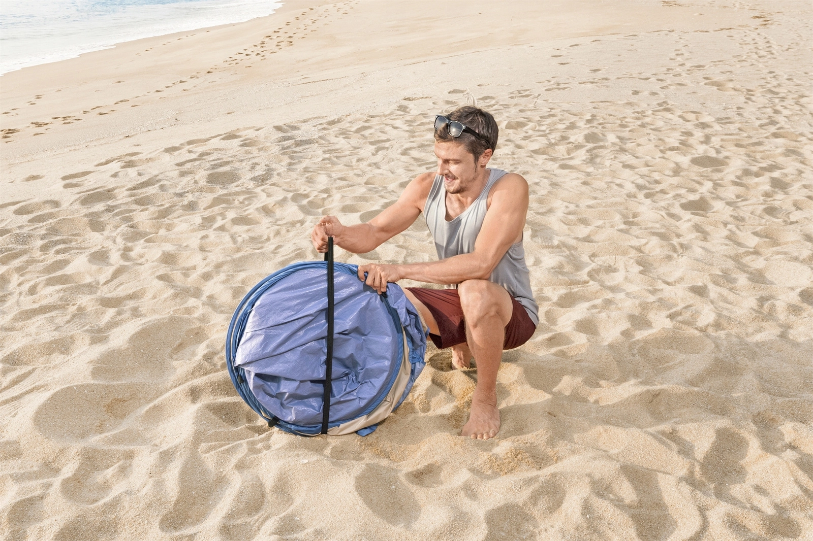 Profitez du confort à la plage, au lac ou dans le jardin. L’abri de plage BESTWAY Beach Quick 2 combine déploiement ultra-rapide, faible poids et structure stable en fibres de verre. La large entrée et les fenêtres en maille offrent une excellente circulation de l’air, tandis que le tapis de sol intégré crée un espace propre et confortable pour se détendre.