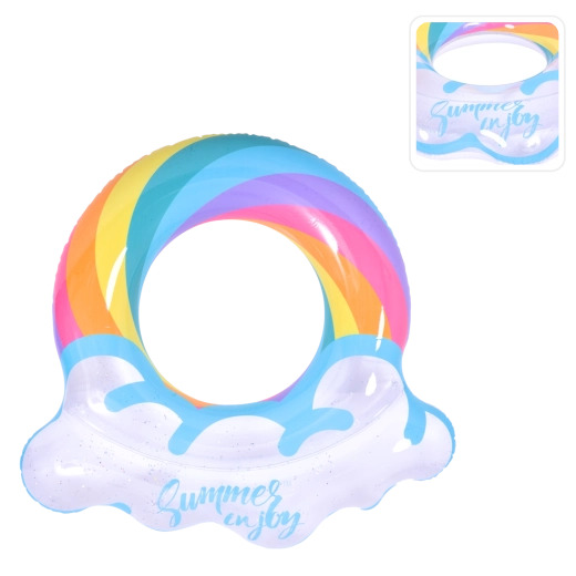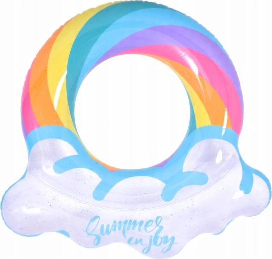 La bouée gonflable à motif arc-en-ciel avec bords en forme de nuages est la compagne idéale pour les loisirs d’été. Son corps transparent avec bandes colorées et particules scintillantes assure une excellente visibilité sur l’eau et ressort sur chaque photo. Grâce à sa structure en vinyle solide, la bouée résiste à l’abrasion et à l’usure courante.