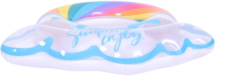Le PVC transparent avec bandes colorées et sequins brillants vous rendra immanquable sur l’eau – amusement et style réunis.