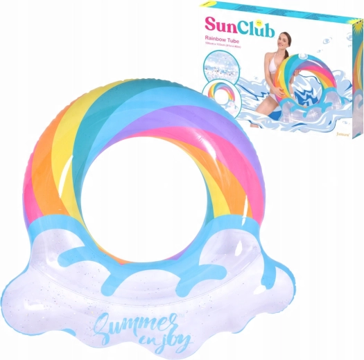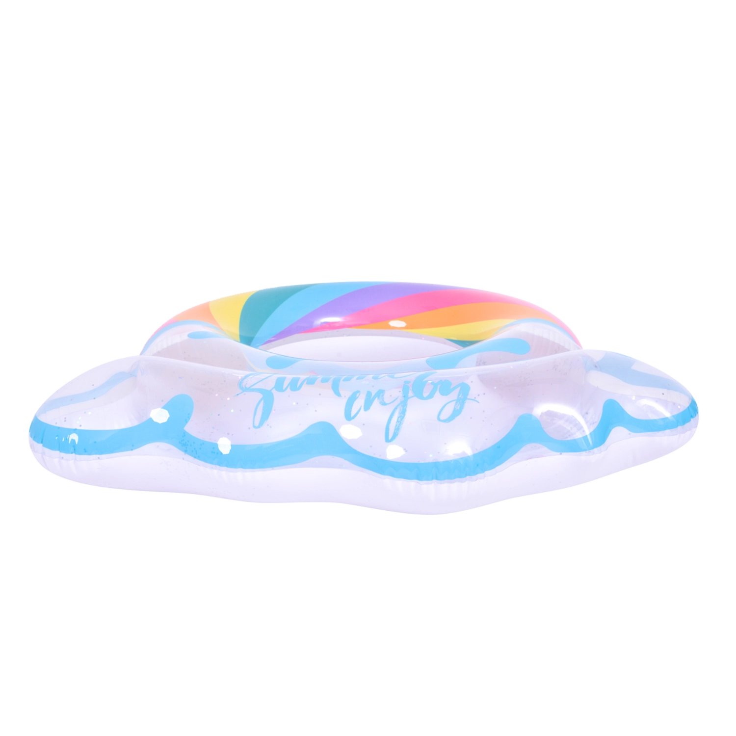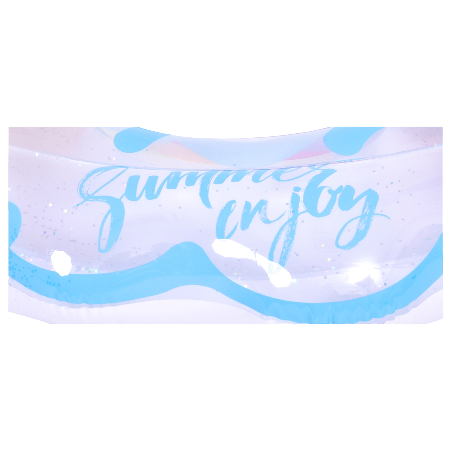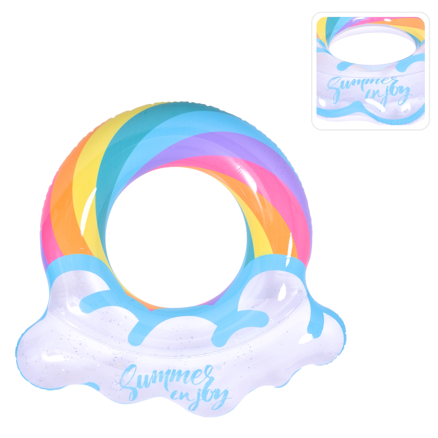 Profitez pleinement de l’été avec cette élégante bouée gonflable en forme d’arc-en-ciel. Son design transparent avec accents bleus et paillettes brillantes apportera une touche de style à vos activités aquatiques. Idéale pour la piscine comme pour la mer, fabriquée en vinyle résistant pour une longue durée de vie et une flottaison et détente en toute sécurité. Son grand diamètre de 106,5 × 103 cm assure le confort des ados et des adultes 12+ .