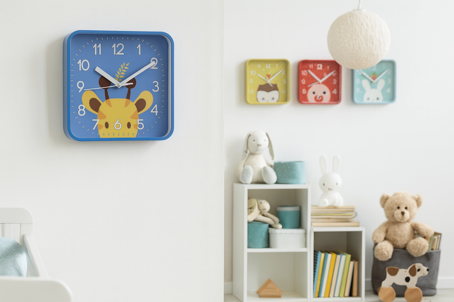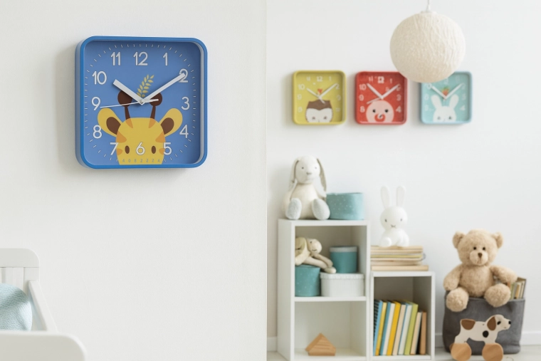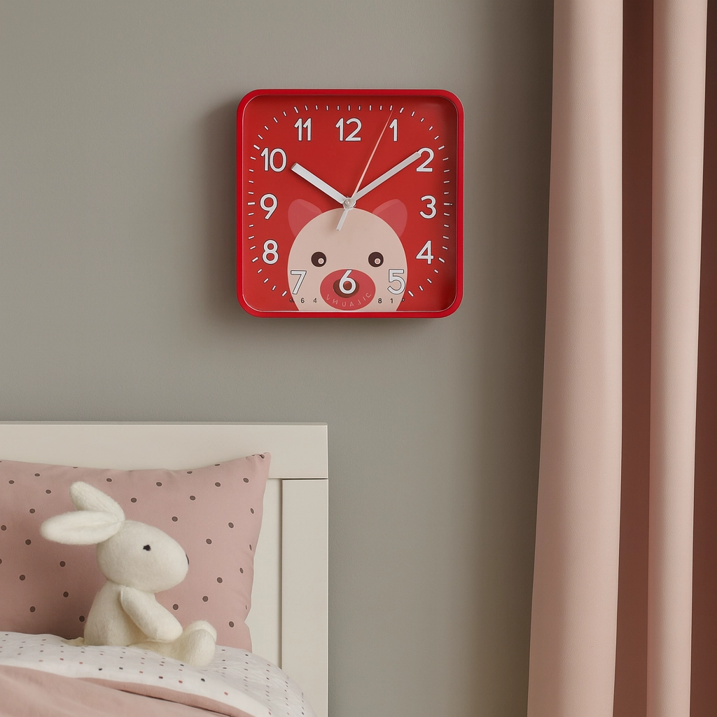 Adorable horloge murale pour enfants avec cadre carré, dotée de couleurs vives, de grands chiffres arabes et d’un cadran clair et lisible. Grâce à sa construction légère et résistante, elle se suspend facilement et convient parfaitement à une chambre d’enfant, une crèche ou une salle de jeux. Les motifs d’animaux ludiques aident les enfants à apprendre à lire l’heure facilement tout en rendant l’intérieur plus chaleureux.