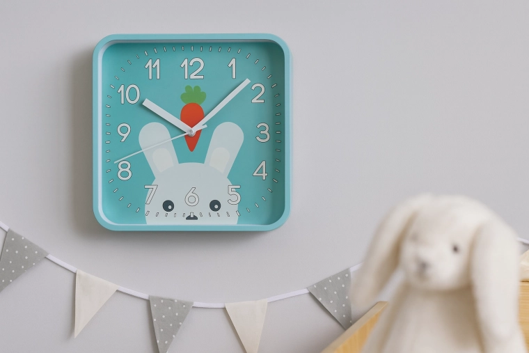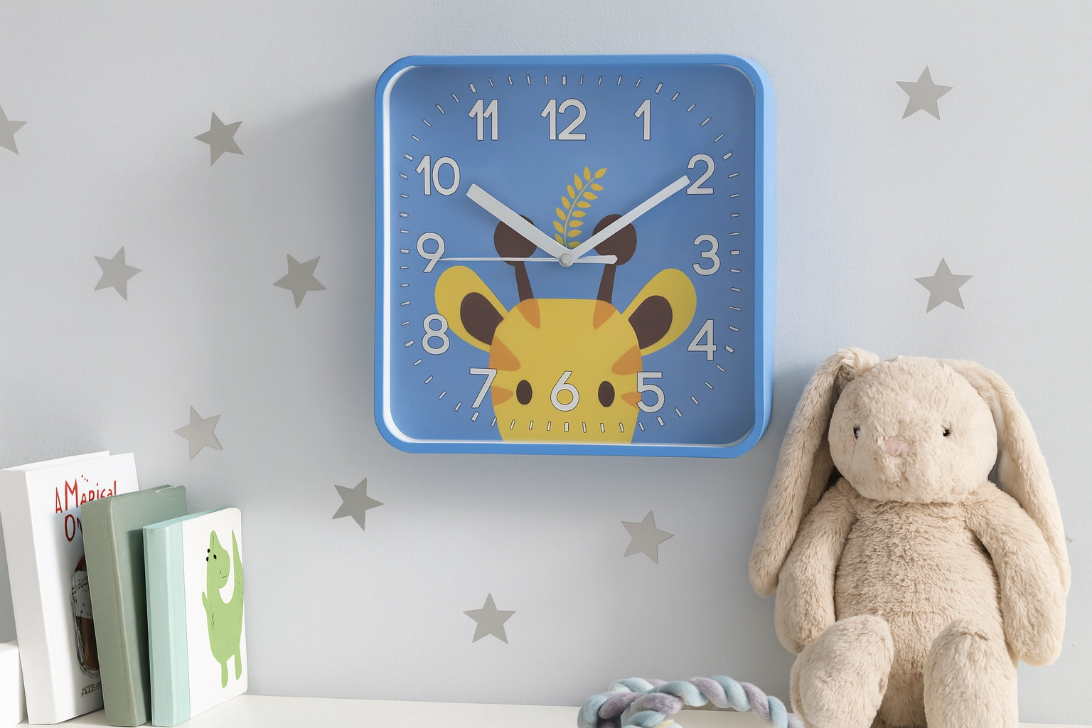 Cette horloge carrée joyeuse aux coins arrondis crée une atmosphère agréable dans la pièce et stimule la curiosité des enfants. Les grands chiffres contrastés et les repères de minutes marqués garantissent une excellente lisibilité même de loin, afin que les enfants apprennent l’heure naturellement et de manière ludique.