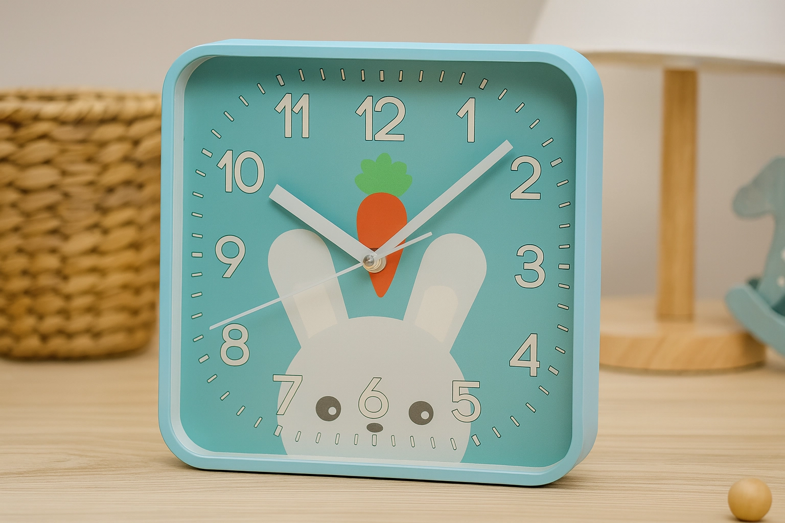 Le cadran avec chiffres arabes contrastés et repères de minutes aide les enfants à lire l’heure rapidement et correctement.