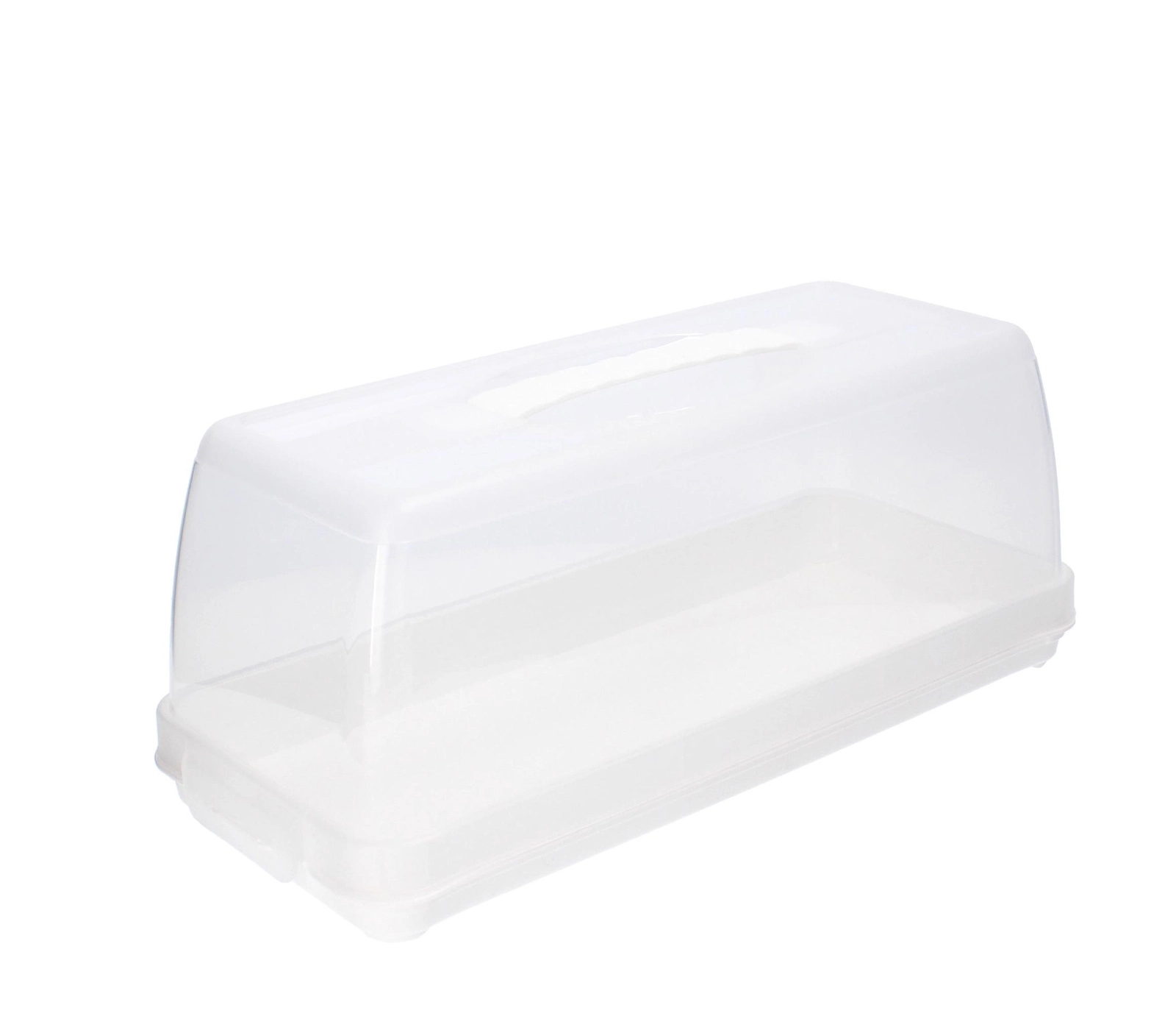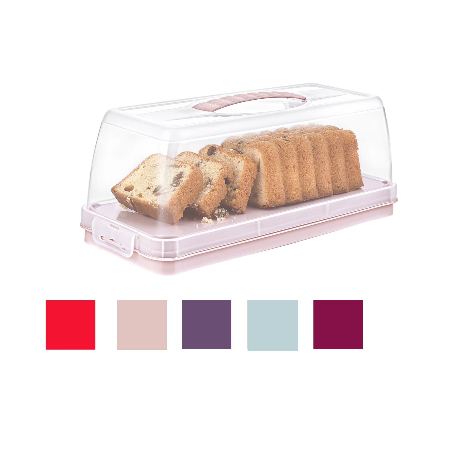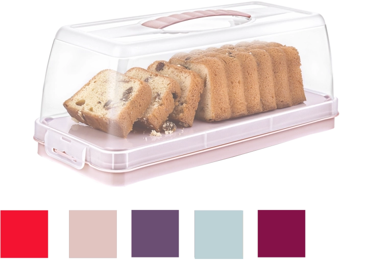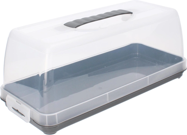 Des clips latéraux robustes et une poignée intégrée maintiennent le couvercle solidement en place et facilitent le transport des gâteaux, pains et pâtisseries sans risque de déplacement.