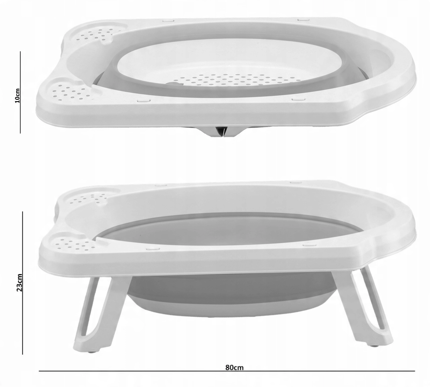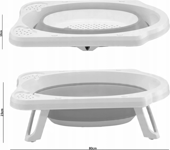 Grâce à ses dimensions généreuses de 80 × 45,5 × 24 cm, elle convient des nouveau-nés aux tout-petits. Le matériau se nettoie facilement, la baignoire est prête à l’emploi en quelques secondes et se replie rapidement après le bain.