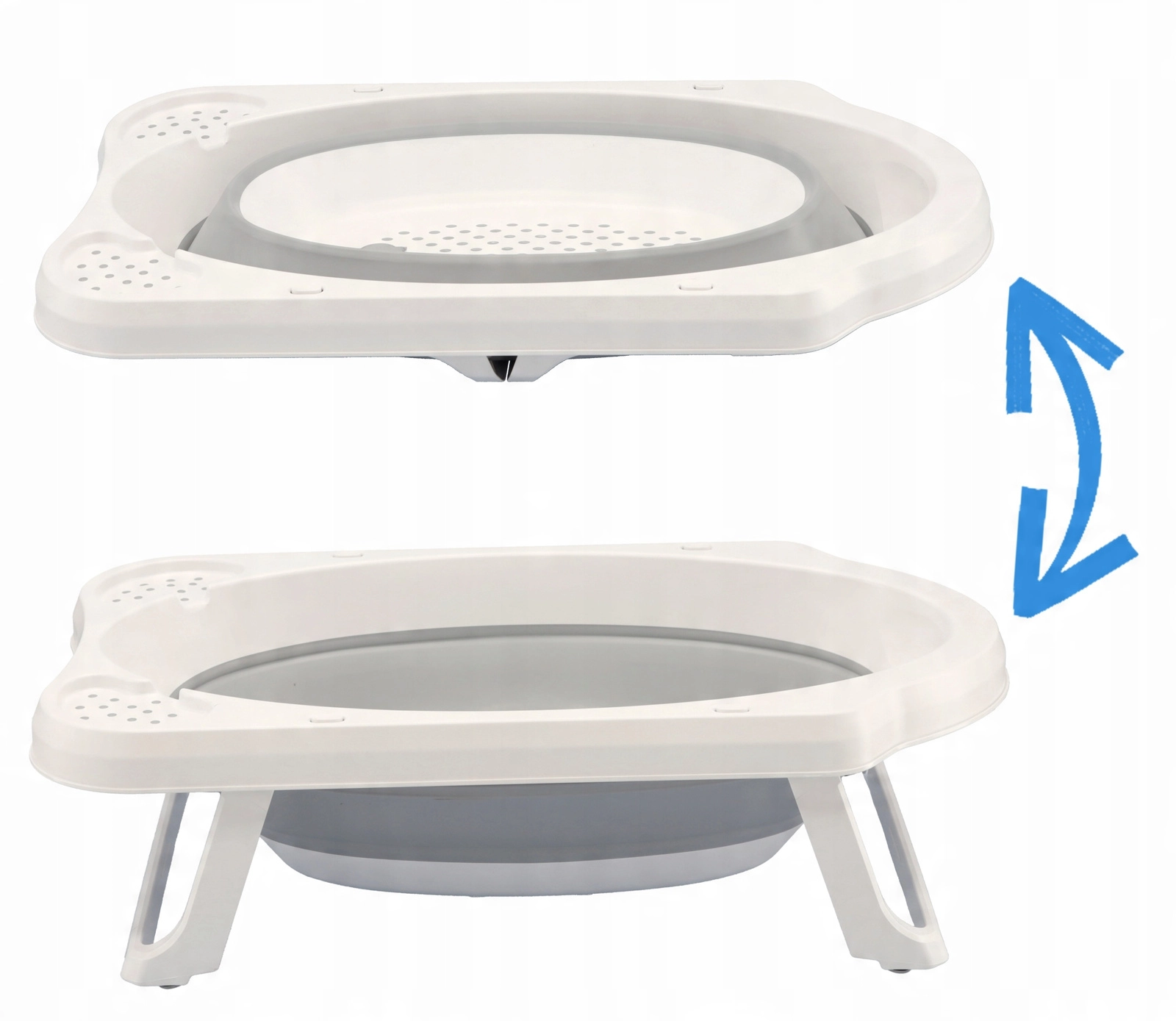 Un mécanisme de pliage astucieux permet de transformer rapidement la baignoire en un format plat pour gagner de la place dans la salle de bain et lors des déplacements.