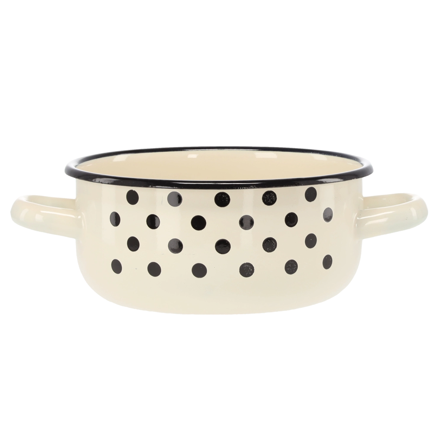 Casserole émaillée pratique d’un volume de 1,5 l et d’un diamètre de 16 cm, dans une élégante couleur blanche avec des pois décoratifs. Grâce à ses deux poignées, elle se manipule aisément; idéale pour la cuisson quotidienne, le réchauffage et le service. Émail résistant, design élégant et entretien facile pour le plaisir de cuisiner chaque jour.