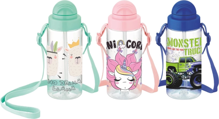 Bouteille pour enfants de 500 ml pour l’hydratation au quotidien. Grâce à sa paille intégrée et à son bouchon vissé étanche, on boit confortablement sans renverser – idéale pour l’école, le sport et les déplacements. Fabriquée en plastique durable sans BPA, légère et facile à transporter. Disponible en rose, violet et bleu.