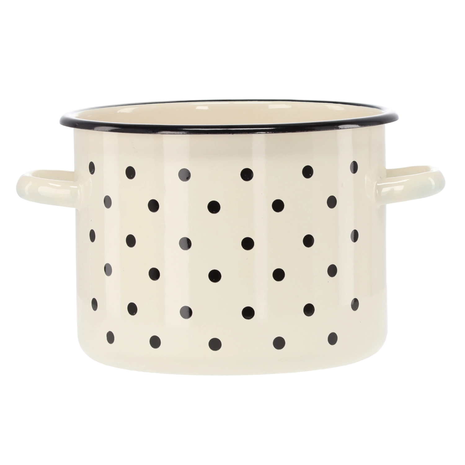 Ce faitout émaillé pratique allie un design intemporel à une grande robustesse. La couleur blanche avec un motif à pois discret apporte une touche fraîche à votre cuisine, tandis que la surface émaillée de qualité assure une chauffe homogène et une longue durée de vie.