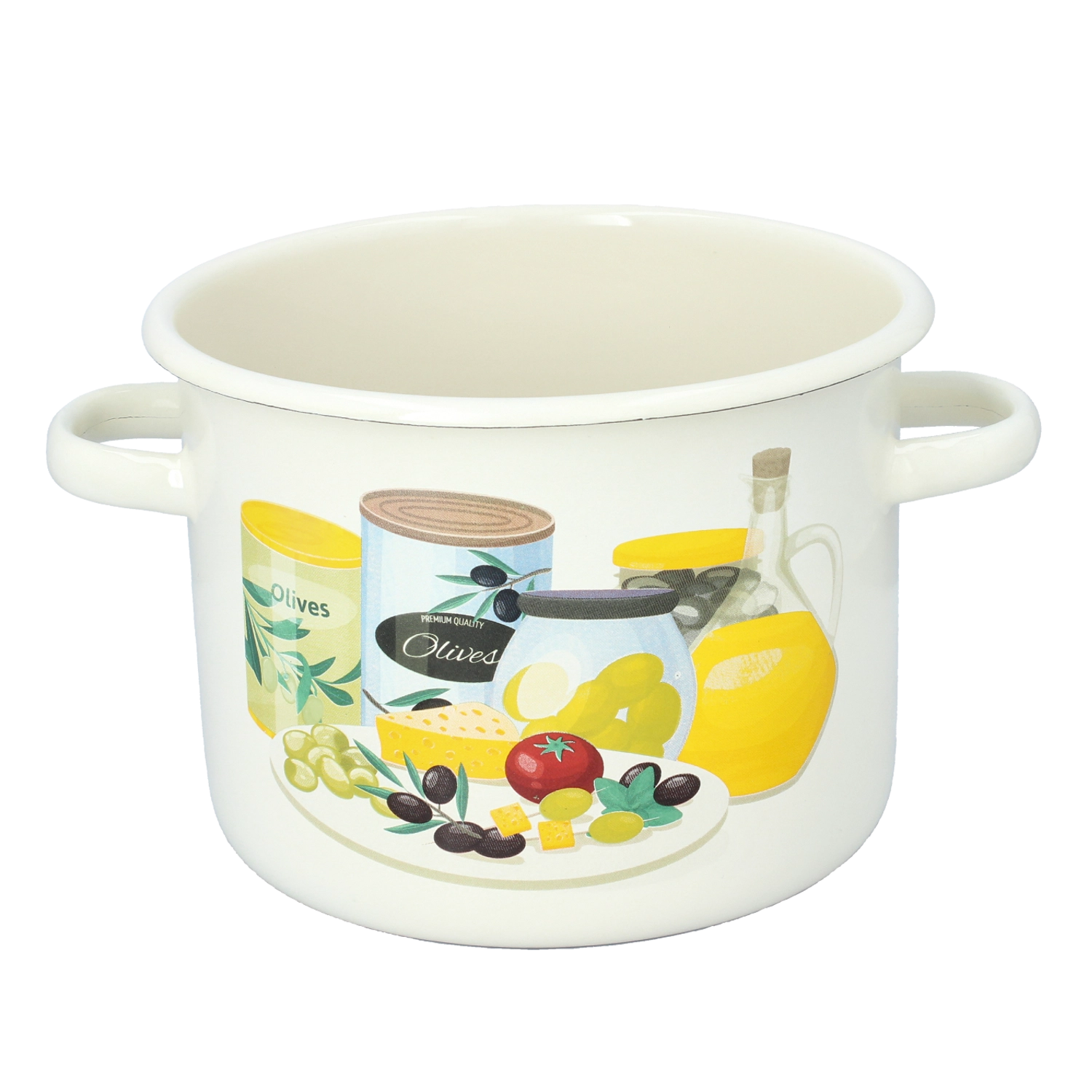 Pratique casserole émaillée d’une capacité de 4,5 l et d’un diamètre de 20 cm, dans une élégante couleur crème avec un motif décoratif d’olives. Elle se distingue par sa résistance, sa facilité d’entretien et elle est idéale pour cuisiner de plus grandes portions au quotidien.