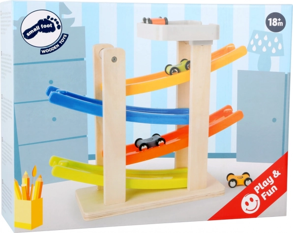 Les rampes multicolores rendent le jeu visuellement attrayant et favorisent l'apprentissage des couleurs.