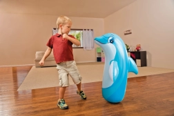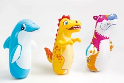 Amusant animal de boxe gonflable pour enfants dès 3 ans, apportant beaucoup de mouvement et de rires à la maison comme à l’extérieur. Grâce à la base stable avec sable, il revient toujours en position après une poussée, idéal pour dépenser de l’énergie en toute sécurité. Fabriqué en vinyle robuste, prétesté et équipé d’une valve de sécurité. Disponible en 3 adorables motifs d’animaux. Taille env. 97 × 61 cm.