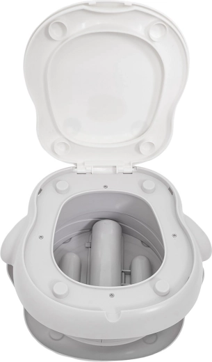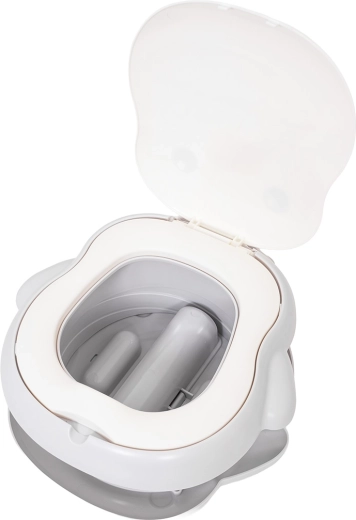 Le pot offre un réglage de hauteur à deux niveaux, une base antidérapante stable et un distributeur de sacs intégré pour une solution propre et simple sans avoir à chercher des toilettes. Le colis comprend également un rouleau de sacs, un sac de transport et des patins antidérapants autocollants pour une stabilité accrue.