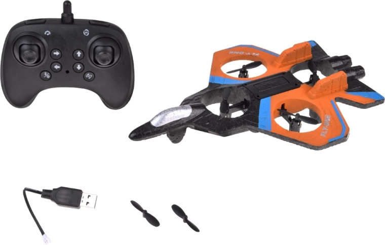 - Kit complet : drone, télécommande, câble USB et hélices de rechange