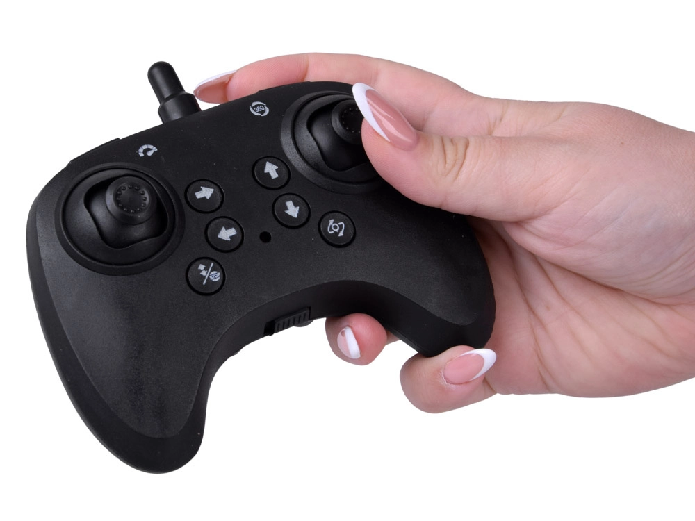 La télécommande de type manette de jeu offre un contrôle précis de la montée/descente, avant/arrière, gauche/droite et déclenche d’une touche les tours à 360° ainsi que le décollage/atterrissage. Le drone gère le vol en cercle autour d’un point et les virages fluides, pour un vol dynamique et des acrobaties spectaculaires.
