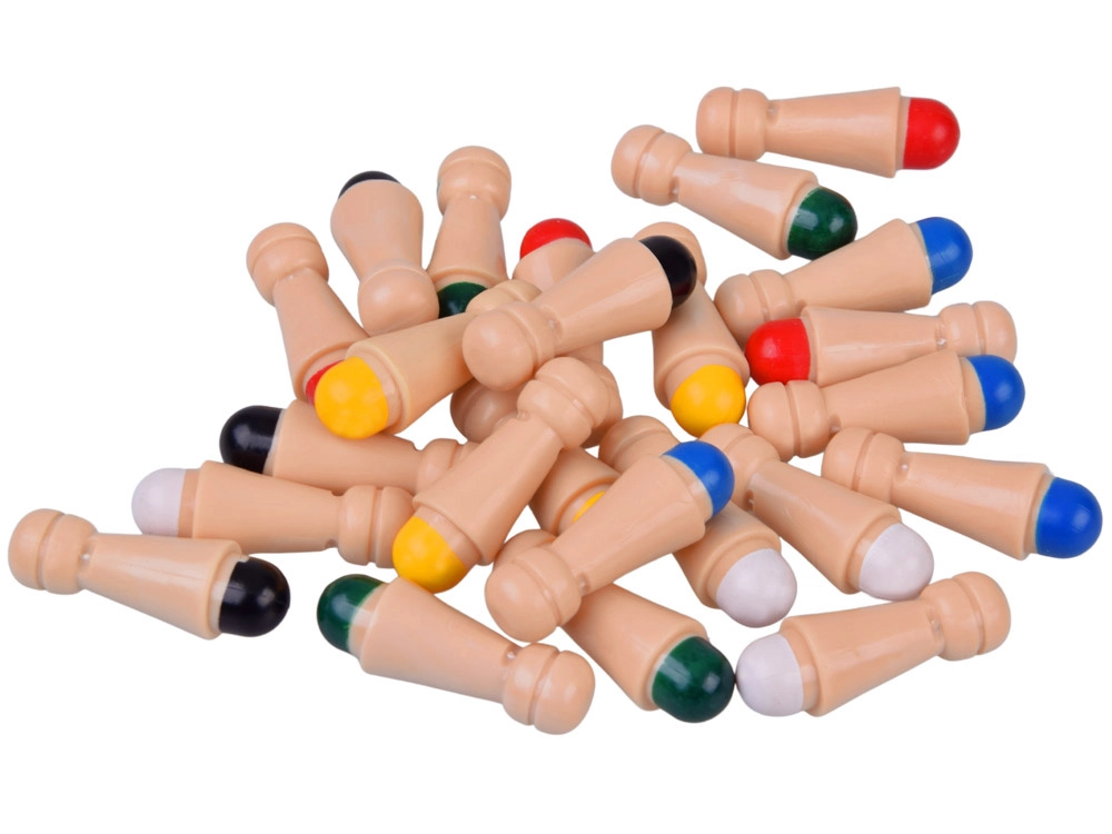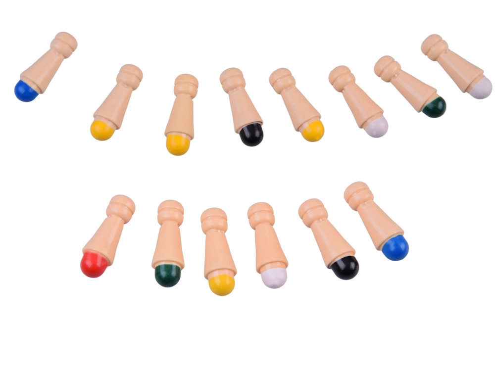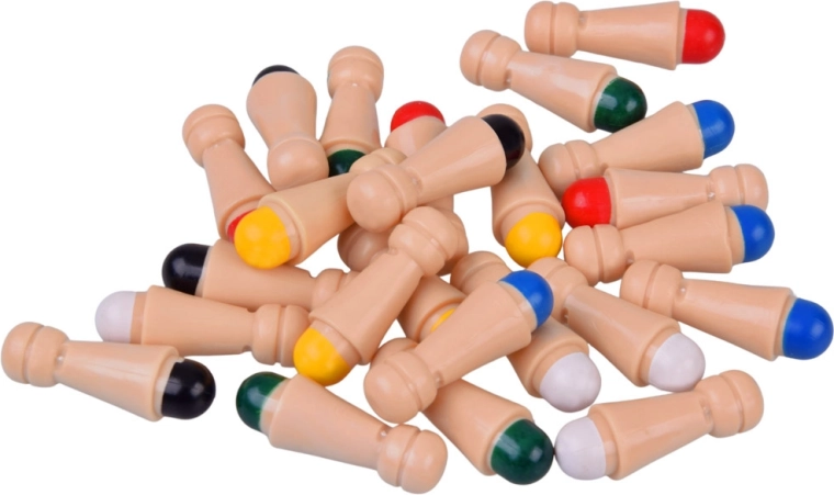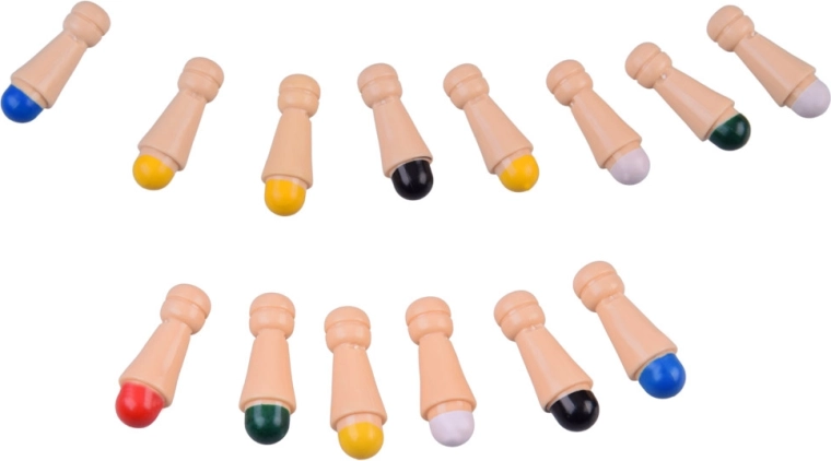 Les règles peuvent être facilement adaptées : gagne celui qui collecte en premier 4 chevilles de la même couleur, ou celui qui obtient 6 couleurs différentes, ou encore le plus grand nombre de chevilles à la fin de la partie. Le bois naturel, la finition lisse et la pochette textile pratique pour ranger les pièces font de ce jeu un compagnon résistant pour le jeu quotidien.