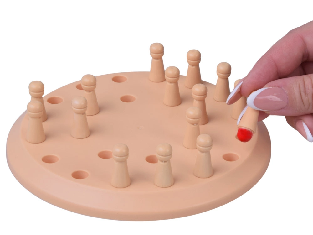 Les extrémités colorées des chevilles cachées dans les trous obligent les joueurs à mémoriser les positions et les couleurs. Un entraînement cognitif idéal sous forme de jeu.