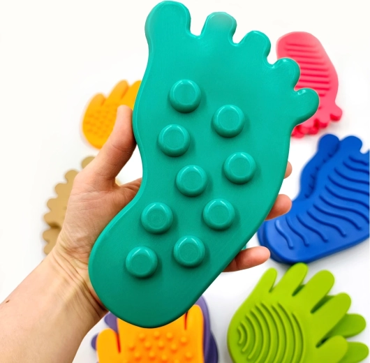 Le parcours offre des possibilités illimitées : du « parcours défis » (marche à l’aveugle ou sur une jambe), aux jeux de vitesse, jusqu’aux massages relaxants des paumes et des plantes des pieds. Les éléments en matériau sûr et flexible sont durables, antidérapants et se nettoient facilement à l’eau courante – une excellente solution pour la maison, les écoles maternelles et les cabinets de thérapie.