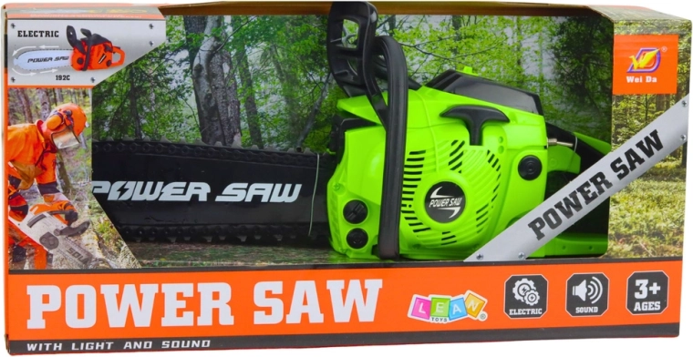 La tronçonneuse est équipée d’une chaîne en caoutchouc qui tourne lorsqu’elle est allumée, simulant fidèlement le travail de coupe sans risque de blessure. Le jeu favorise l’imagination, la créativité et la motricité fine, et offre une excellente occasion d’apprentissage par le jeu ainsi que de moments partagés avec les parents.
