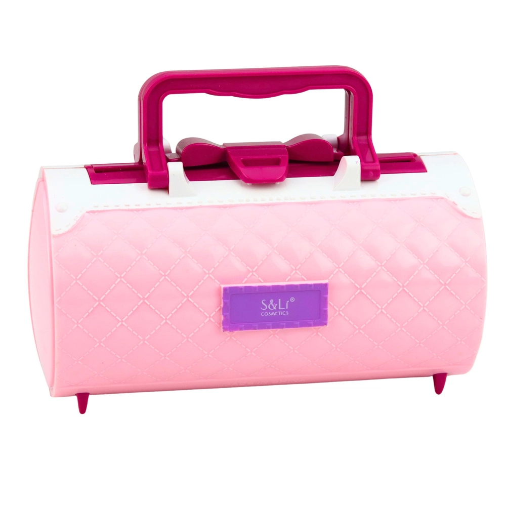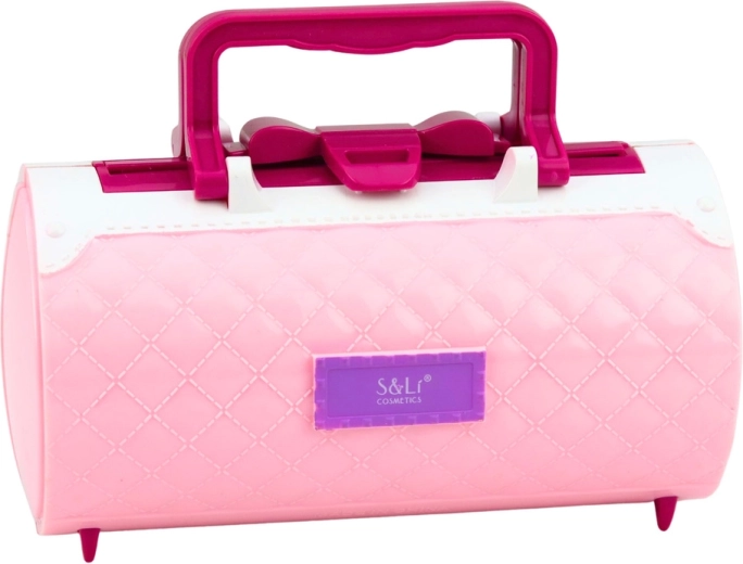 Un élégant coffret rose avec poignée et verrou pour un transport confortable et un rangement sûr de l’ensemble cosmétique.