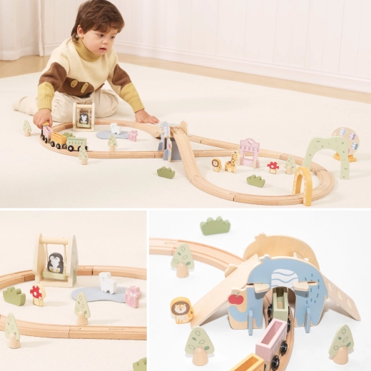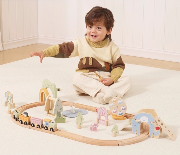 Découvrez un monde d’imagination avec le circuit de train en bois Viga de 62 pièces. Les enfants construisent leurs propres voies avec des ponts et des tunnels, relient les wagons par des aimants et profitent d’heures de jeu créatif. Le bois lisse, les couleurs pastel et l’assemblage facile des rails développent la motricité fine, la coordination et la représentation spatiale.