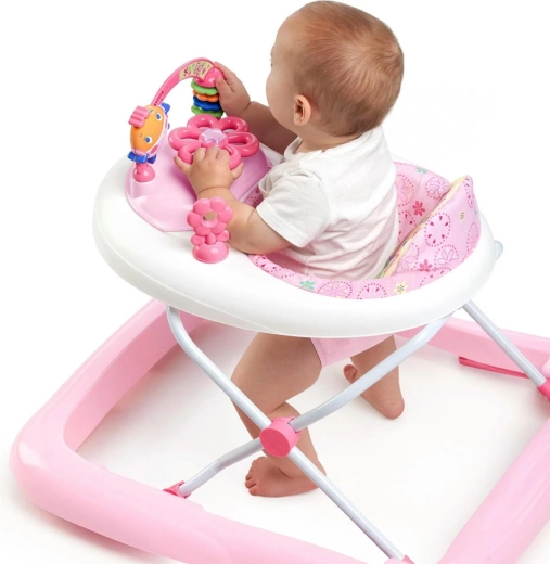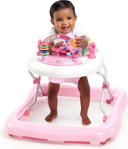 Le trotteur Bright Starts JuneBerry Delight associe une construction stable à des activités variées qui favorisent la motricité fine et la stimulation sensorielle. Le plateau de jeu amovible avec volant, lumières et mélodies divertit l’enfant dans le trotteur comme au sol. Le dossier haut et rembourré assure confort et maintien correct du dos.