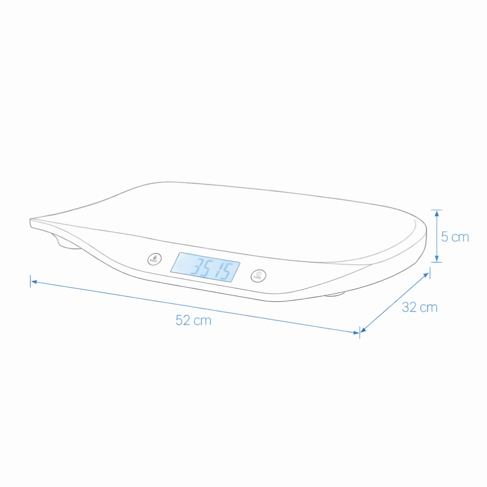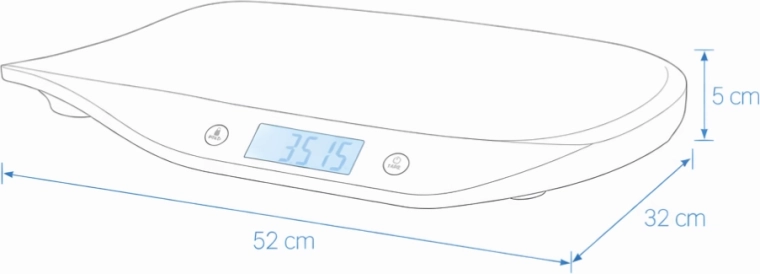 - Forme ergonomique sûre pour une pesée sereine de bébé.