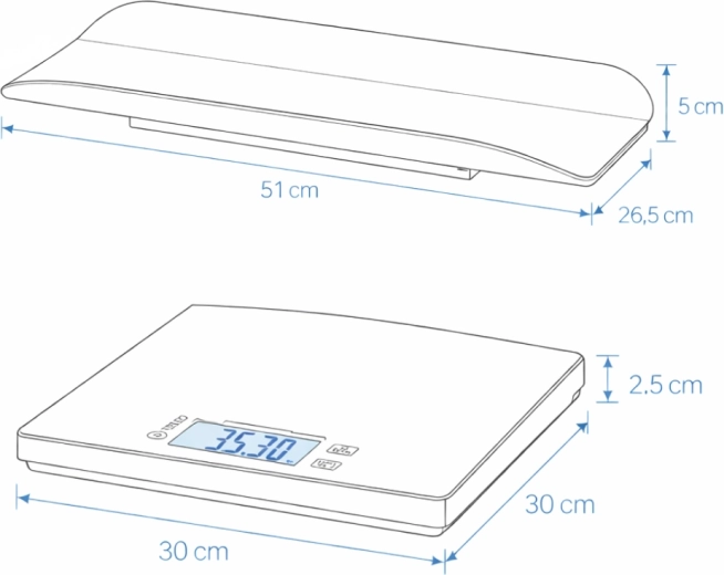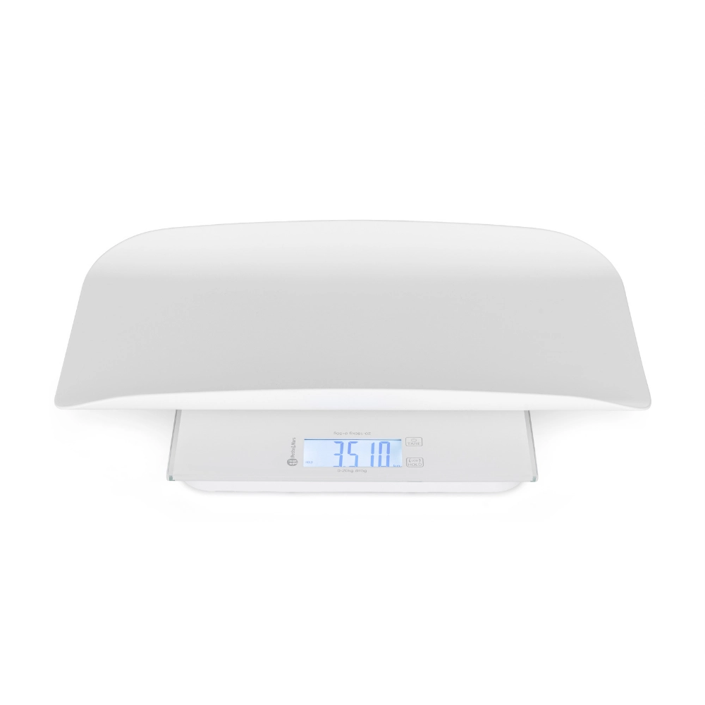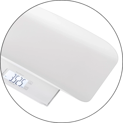 La cuvette ergonomique en plastique offre stabilité et confort au bébé. En un seul clip, transformez la balance standard en balance pour nourrissons précise avec une plage de 0,1–20 kg.