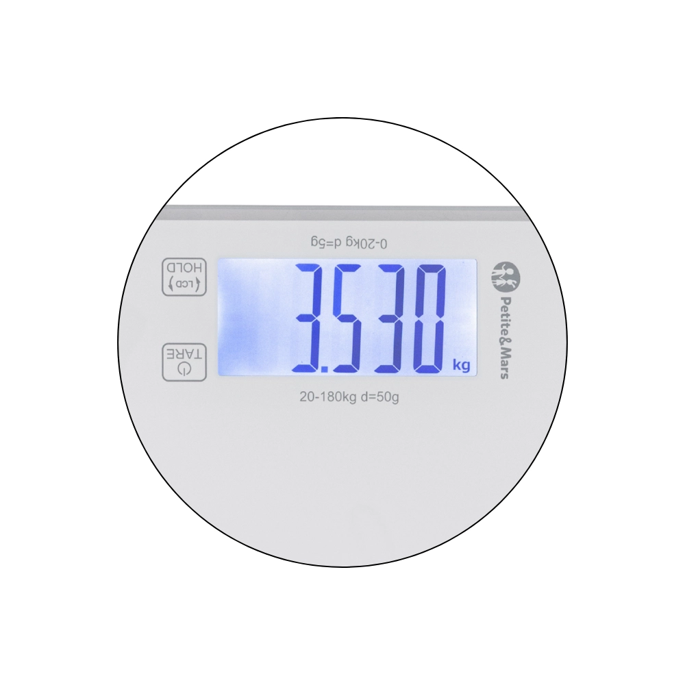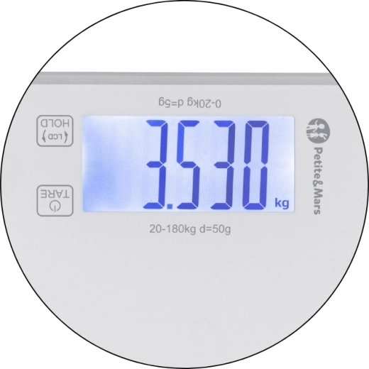 Une seule balance pour toute la famille. La balance numérique Petite&Mars Libra 2-en-1 permet de suivre confortablement le poids du bébé grâce à une cuvette spacieuse et amovible, tout en servant de pèse-personne précis pour les adultes. Son grand écran LCD pivotant et rétroéclairé garantit une excellente lisibilité des deux côtés, tandis que les touches tactiles offrent une utilisation simple et intuitive.