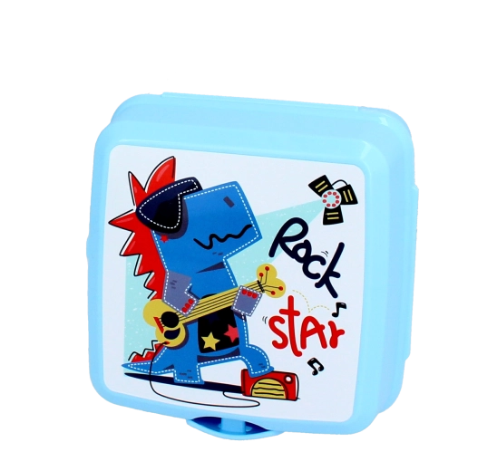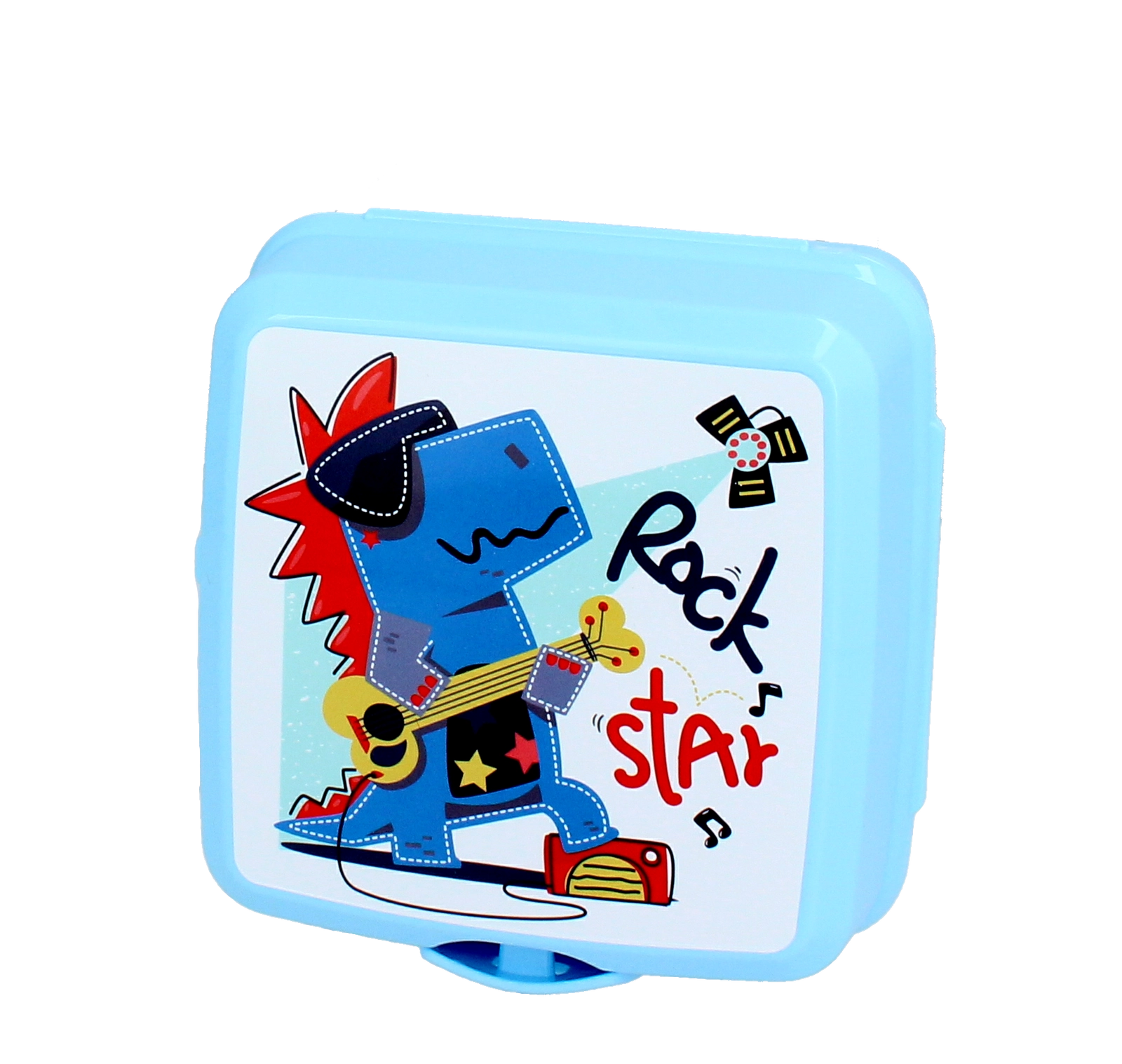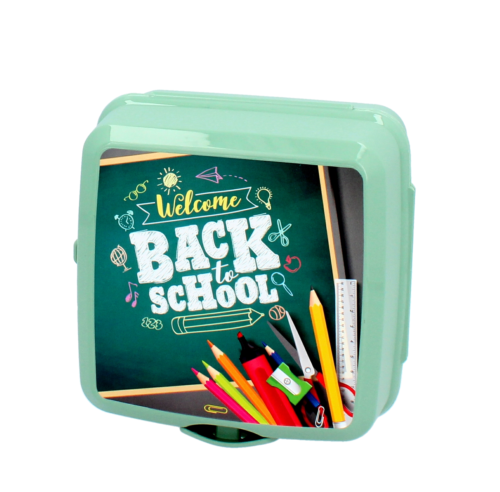 La boîte protège en toute sécurité les sandwichs et en-cas grâce à une fermeture à clip solide. Sa forme compacte se glisse facilement dans le sac à dos.