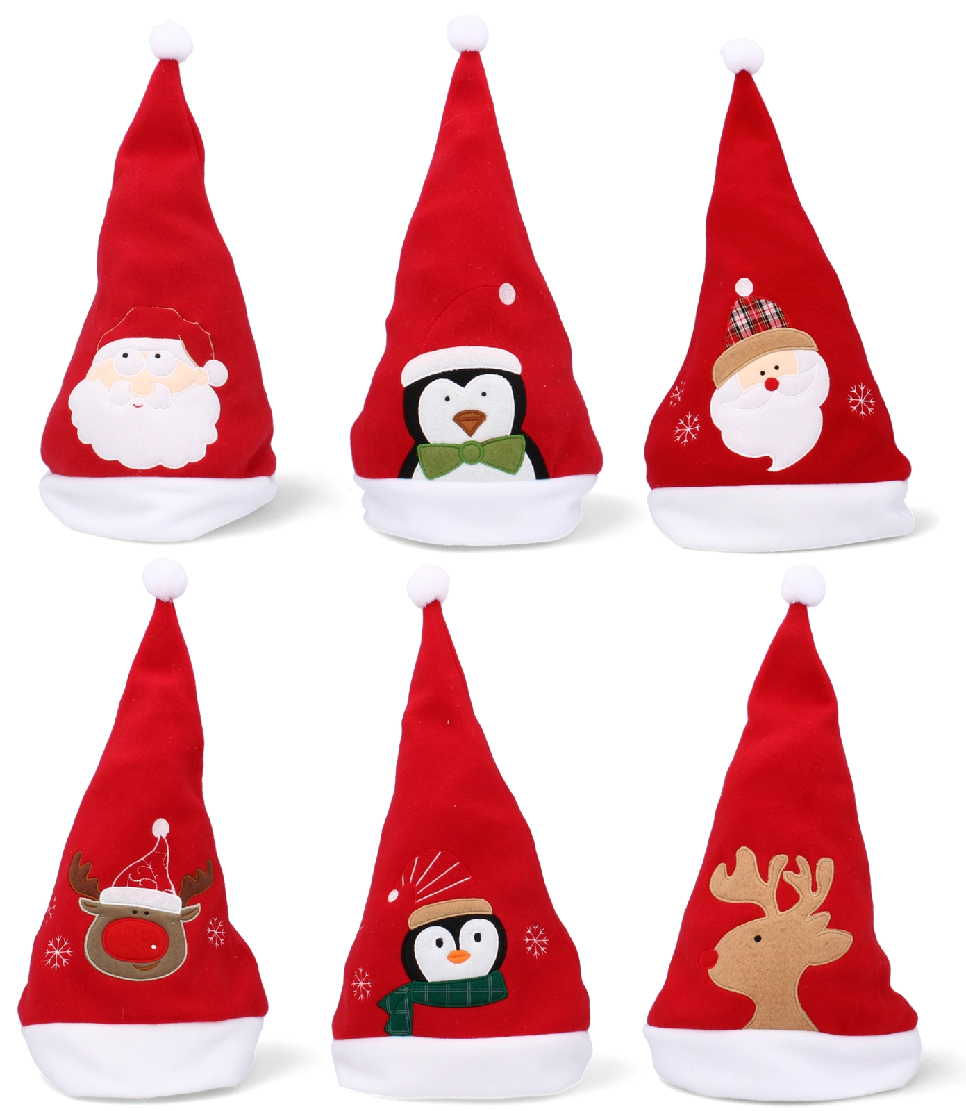 Ajoutez une note ludique à Noël – les bonnets rouges de Santa avec bord blanc et pompon insufflent instantanément l’esprit des fêtes. Chaque bonnet est orné d’une application marquée (Père Noël, pingouin, renne, flocons, etc.), grâce à laquelle vous vous ferez remarquer à toute soirée et sur les photos de famille.