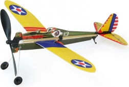 Quelques tours suffisent et l’avion est prêt au décollage. La propulsion par élastique offre un départ dynamique et un plaisir renouvelé sans piles.