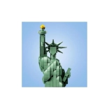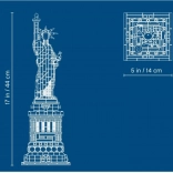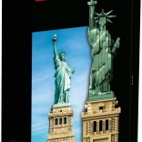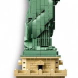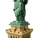 Statue de la Liberté de la collection LEGO Architecture. La réplique regorge de détails : piédestal orné avec reliefs, structure de briques et colonnades, et statue dotée d’une draperie fluide, d’une couronne à sept pointes, d’une tablette et d’une torche dorée.