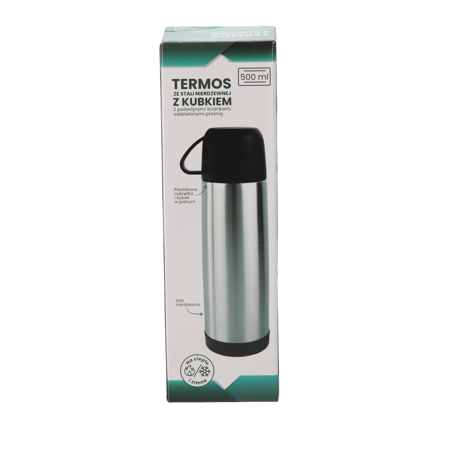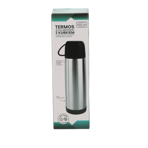 Pratique thermos avec tasse de 500 ml pour une utilisation quotidienne. Grâce à l’acier inoxydable à double paroi, les boissons restent chaudes longtemps – de 96 °C à 38–40 °C après 24 heures. Inclut une tasse en plastique résistante pour boire confortablement en déplacement.