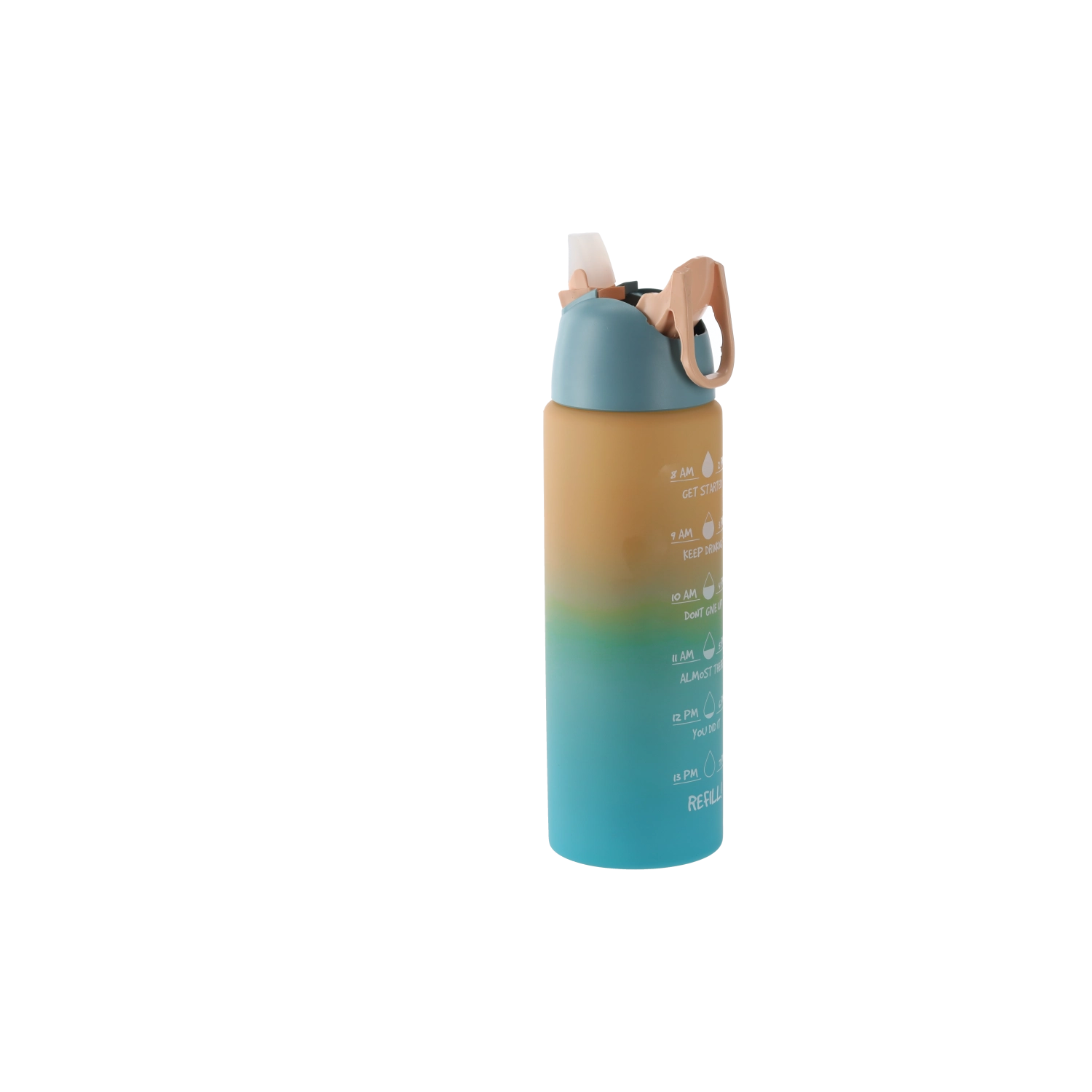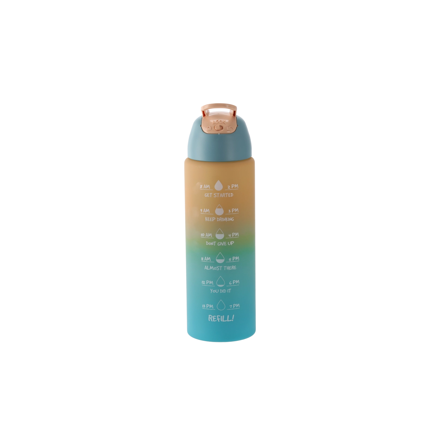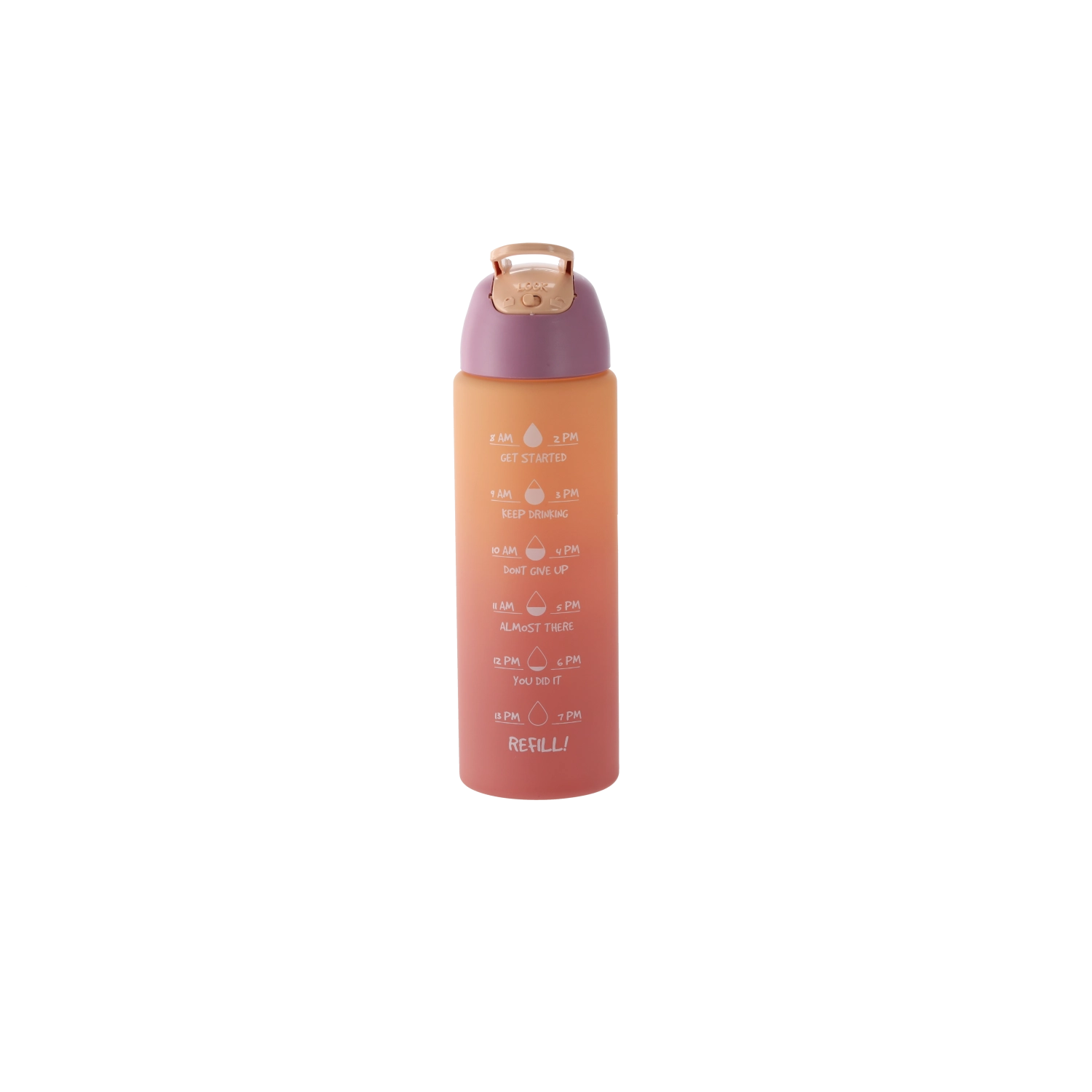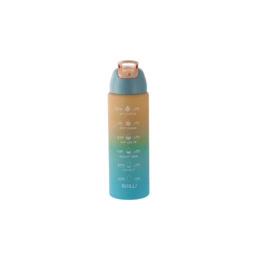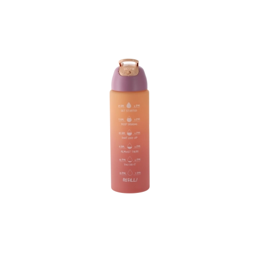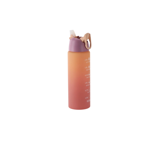 Cette gourde au dégradé ombré dans des tons rose‑orange allie design moderne et fonctionnalité. Son corps en plastique PC résistant est léger, idéal en déplacement et pensé pour tenir confortablement dans les porte-gobelets de voiture et la poche d’un sac à dos. Les repères horaires intégrés sur le côté vous motivent à boire régulièrement tout au long de la journée.