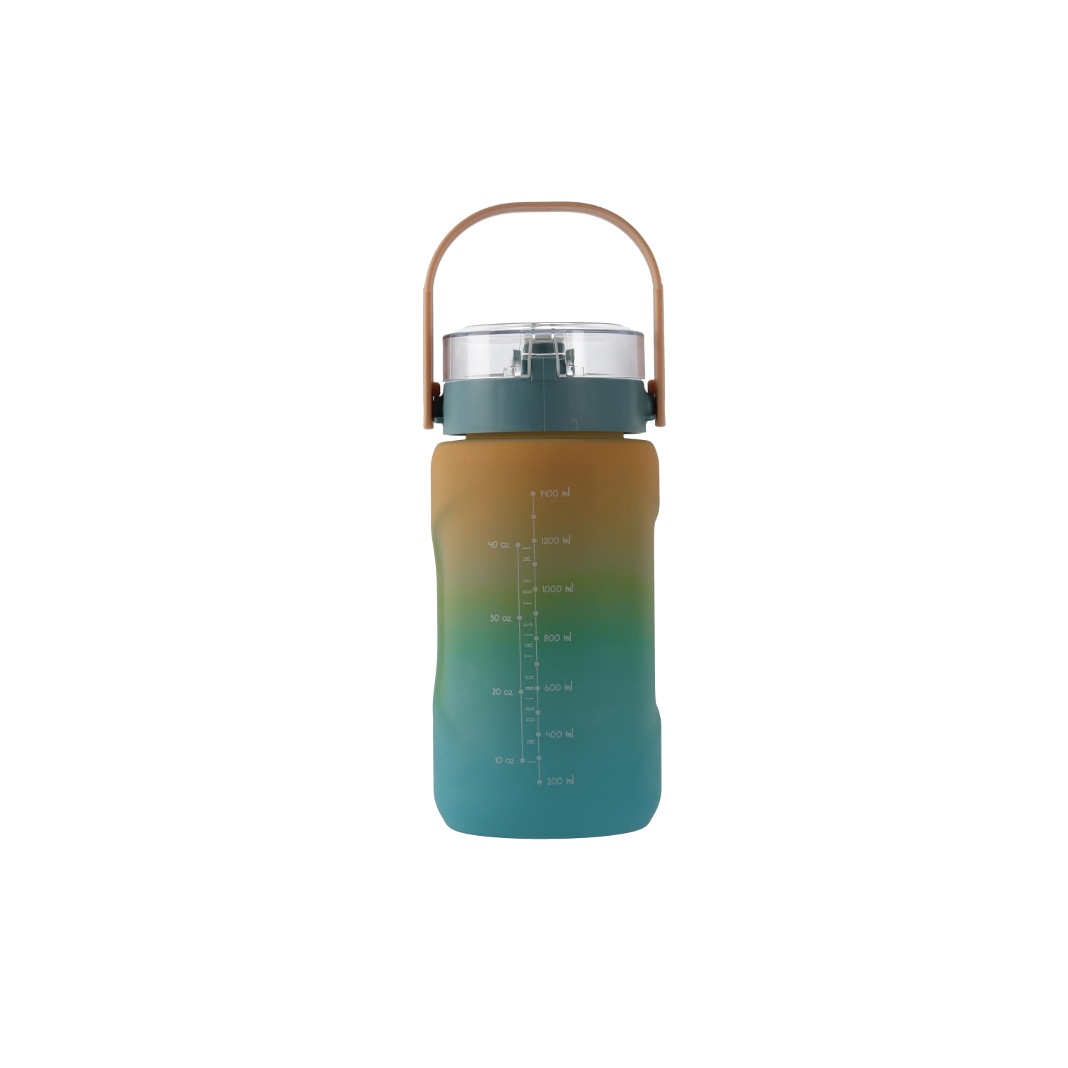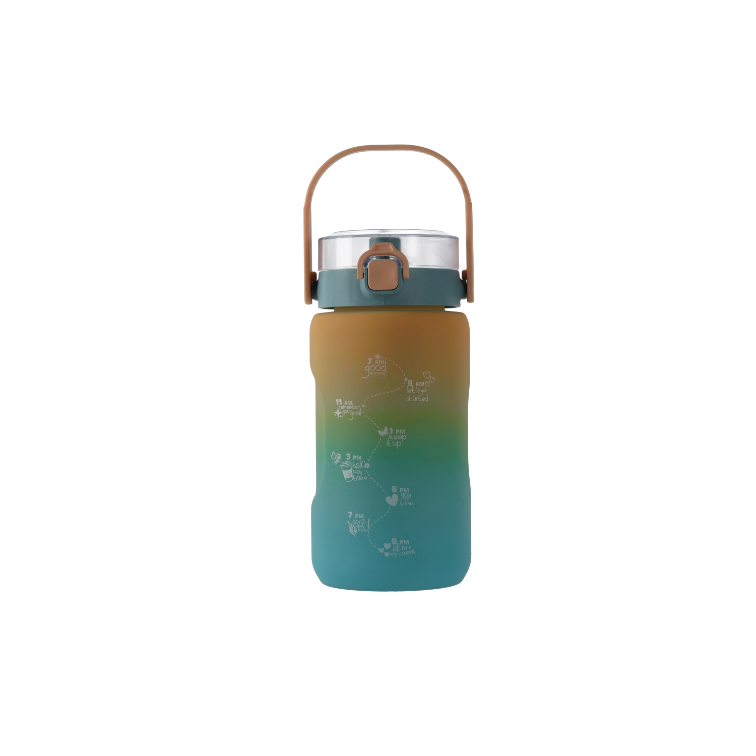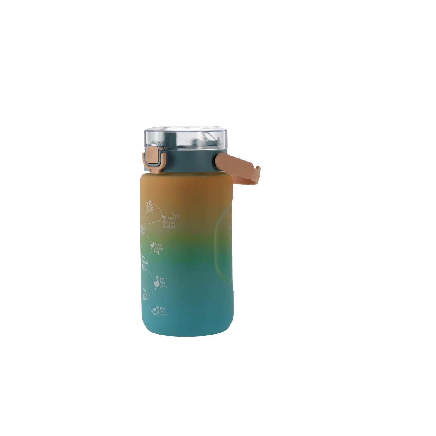 Une bouteille d’hydratation stylée de 1,5 L vous maintient en forme toute la journée. Grâce aux graduations et repères horaires bien lisibles, suivez facilement votre hydratation ; le couvercle à clapet avec verrou évite les fuites et la dragonne pratique facilite le transport. Sa conception en plastique résistant avec effet ombré mat en vert foncé et clair tient parfaitement en main à la maison, au travail comme au sport.