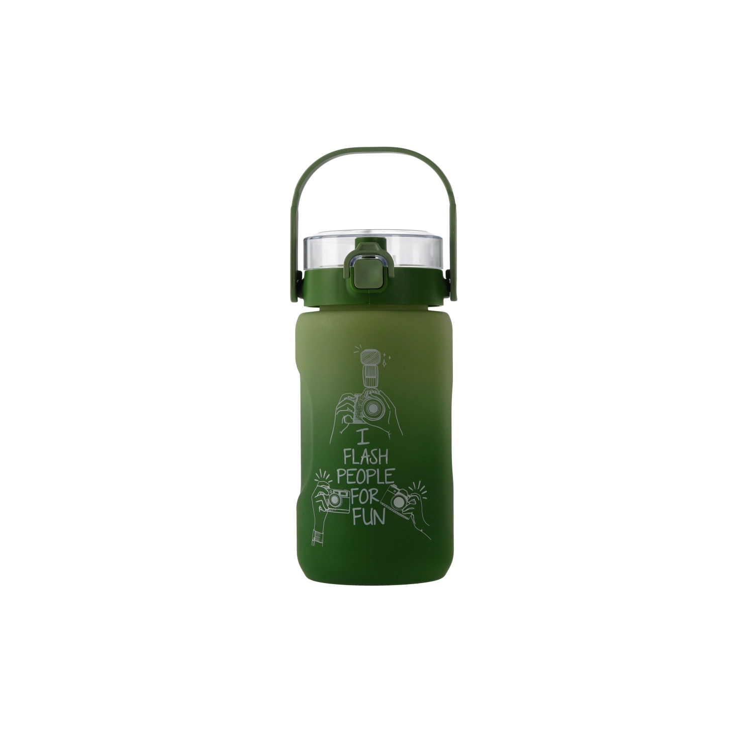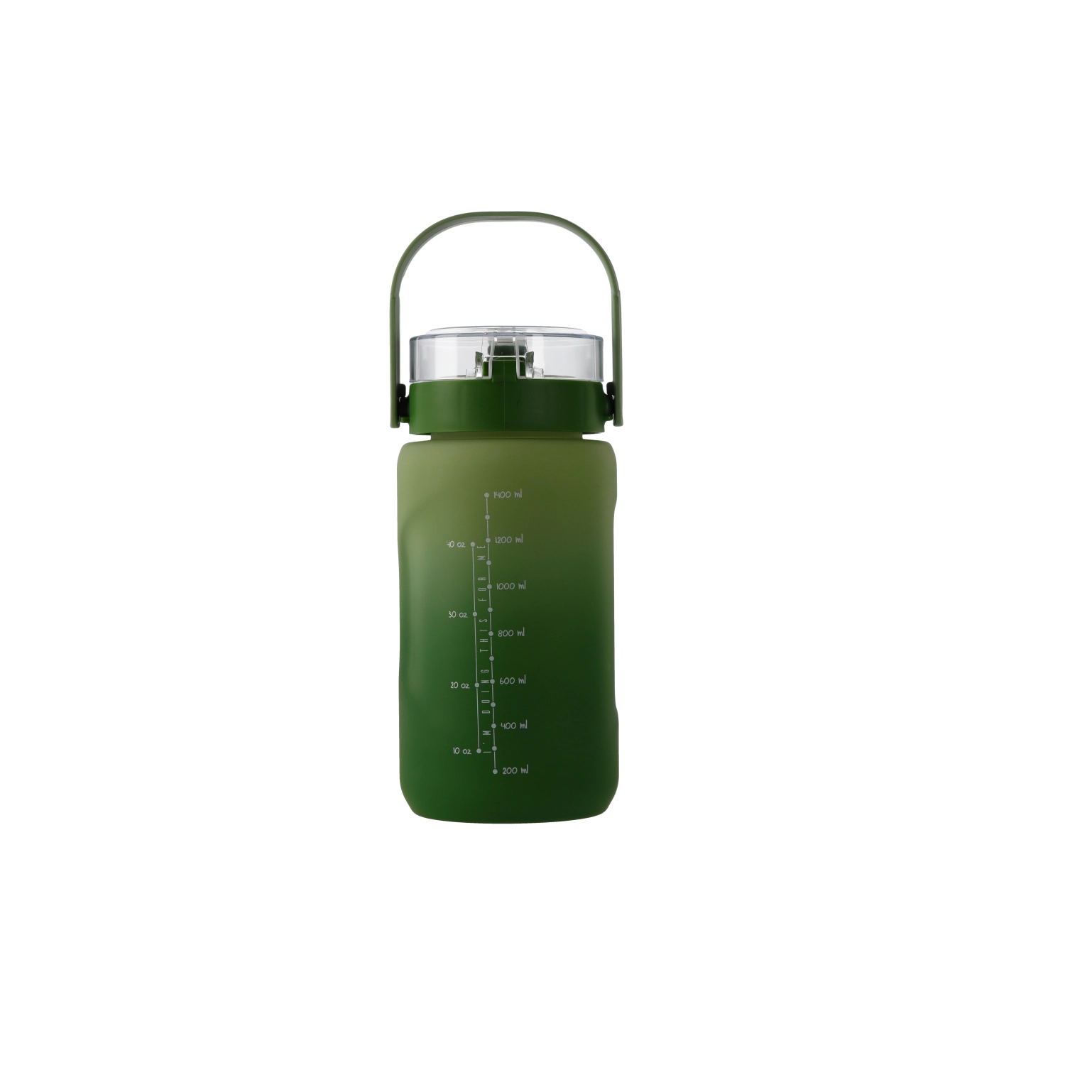 Le plastique léger et résistant avec finition mate offre une prise en main agréable et se nettoie facilement. Le large goulot permet un remplissage aisé avec de l’eau, des glaçons et des fruits. Le dégradé ombré élégant du vert foncé au vert clair confère un look moderne qui se démarque au bureau, à la salle de sport comme en sortie.