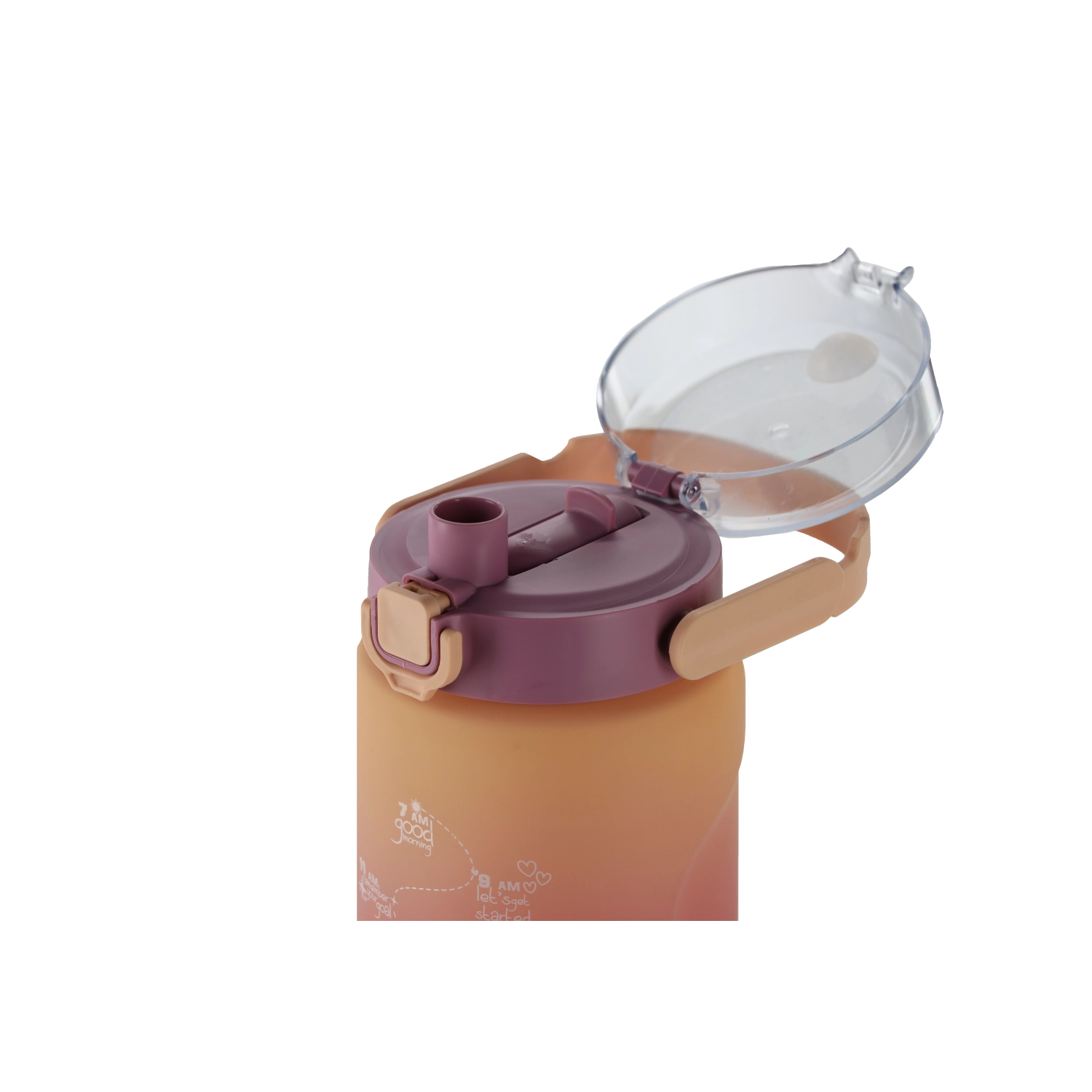La bouteille d’eau grand volume de 1,5 litre est idéale pour une hydratation tout au long de la journée, sans remplissages constants. Des graduations lisibles en millilitres et des repères horaires motivants vous aident à boire régulièrement et à garder de bonnes habitudes d’hydratation. Le couvercle flip-top sécurisé avec verrou minimise le risque de fuite dans un sac à dos ou de sport.